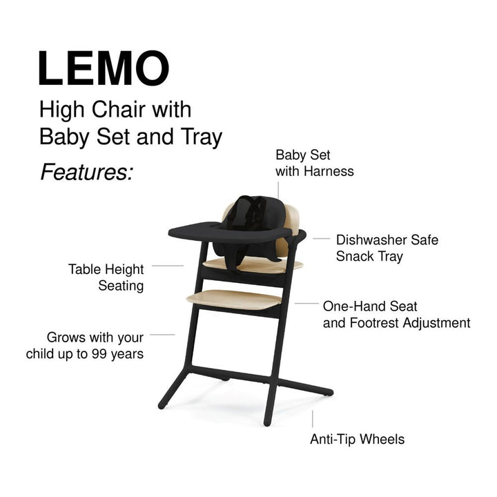CYBEX Lemo 3-in-1 High Chair and Training Tower Set - Sand Black