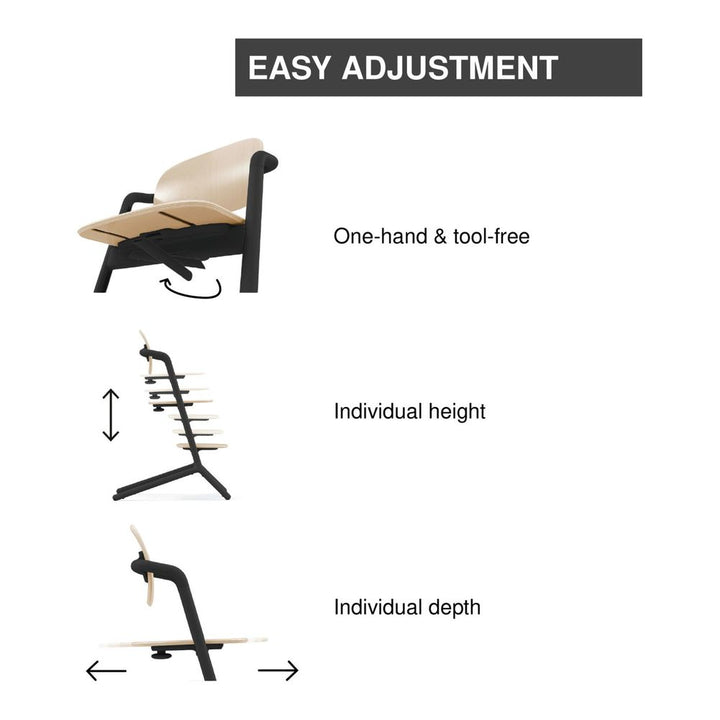 The ultra-smart and ergonomic CYBEX LEMO 3-in-1 High Chair offers a versatile choice that grows with your baby and fits seamlessly into your lifestyle. Simply use the matching attachments for your child’s age and the LEMO 3-in-1 can be used from 6 months until 99 years. At 6 months, use the Baby Set and Snack Tray to make mealtime a breeze, and from 1-5 years, attach the LEMO Learning Tower and open a whole new world of possibility and learning. It lifts your child up to the same level as their parents and siblings, giving them the chance to actively participate in everyday activities like preparing meals, cleaning up, brushing teeth and more. The LEMO Learning Tower also helps improve overall communication and dexterity, and gives children the self-confidence to complete these tasks alone. As your child continues to grow, remove the accessories and seamlessly transform the LEMO into an everyday chair that can be used for many years to come.