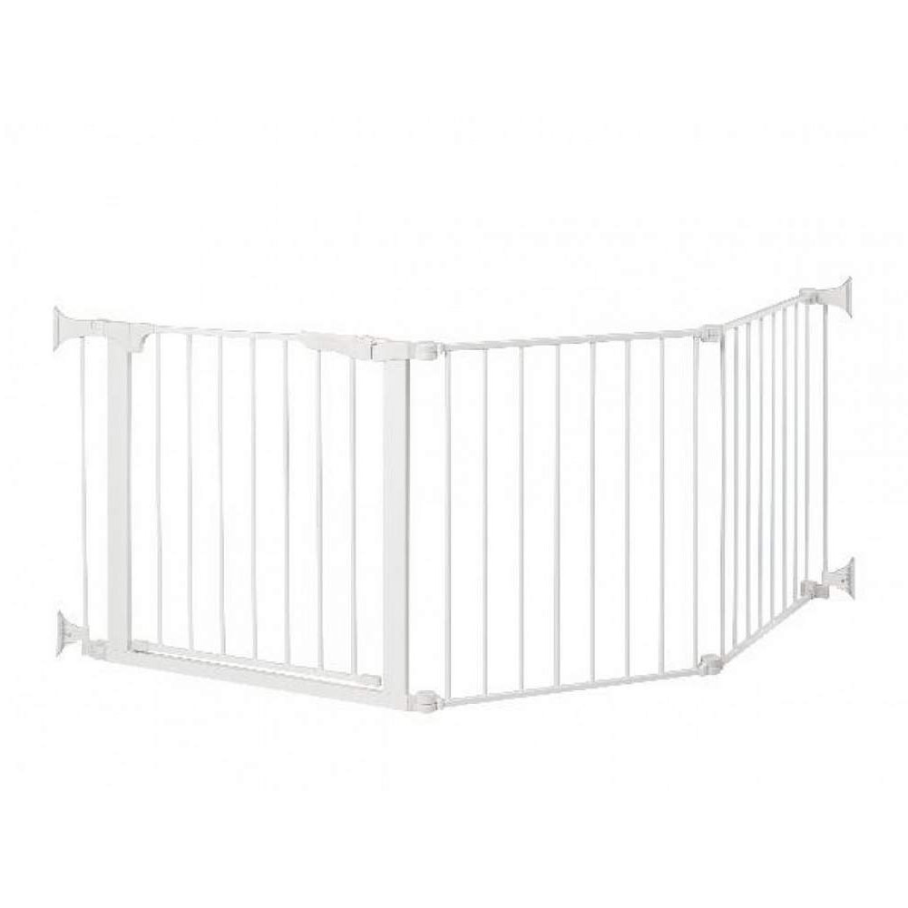 The Auto Close ConfigureGateTM provides maximum safety for use in any extra wide or odd shaped area. All joints rotate; setting individual sections to the ideal angle, and then easily lock in place for a secure attachment. The unique handle design on the extra wide door applies Magnet-Lock Technology, a dual magnet design that automatically draws the door closed and guarantees it locks each and every time! The ConfigureGate also has a hold open feature, that suspends the auto close function until the door is pushed closed. The original 3 piece ConfigureGate will fit an 86” opening. An unlimited number of additional 9” and 24” sections can be added to fit any desired length or to make a freestanding enclosure.