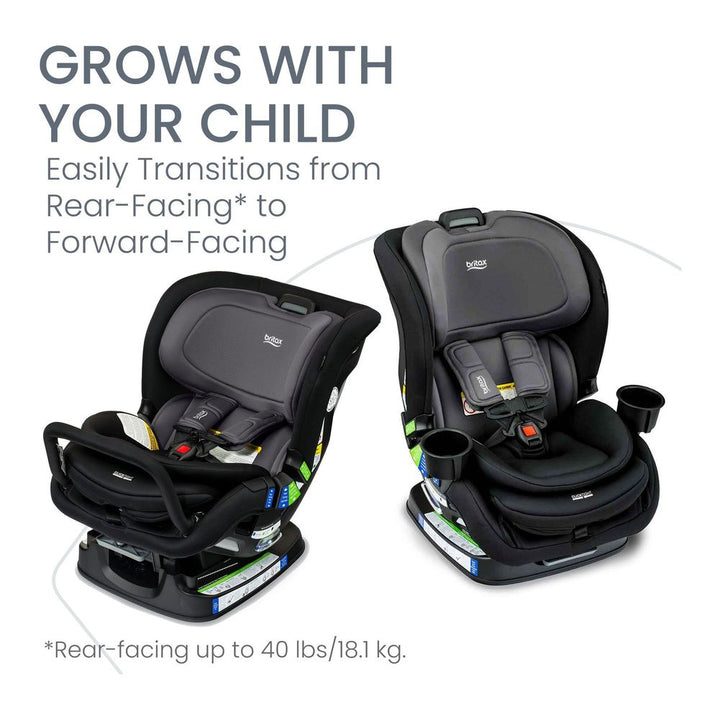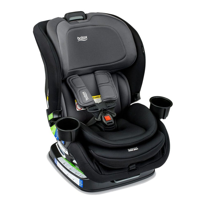 The ReboundReduce™ stability bar easily attaches to the car seat when installed rear-facing, helping to minimize movement in the event of a crash. Slim outside and spacious inside, this convertible car seat features 17 inch/ 43.2 cm SpaceSaver technology designed to fit 3-across* without compromising on trusted Britax safety and premium comfort. The rear-facing car seat includes a patented SafeCell® crumple zone and V-shaped top tether to help manage crash energy. Carbon steel frame and belt paths provide strength and stability. Car seat cover fabrics are naturally flame-retardant with no added FR chemicals, and they’re safe to machine wash and dry time and again.