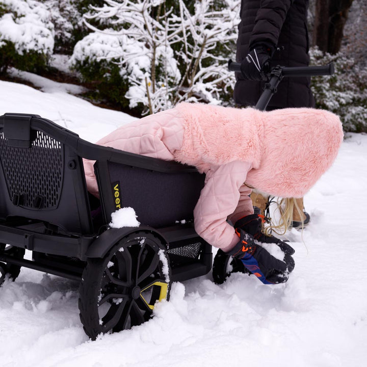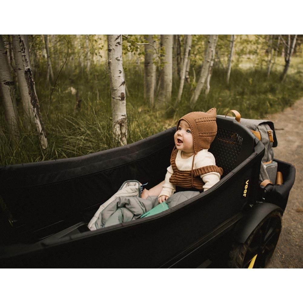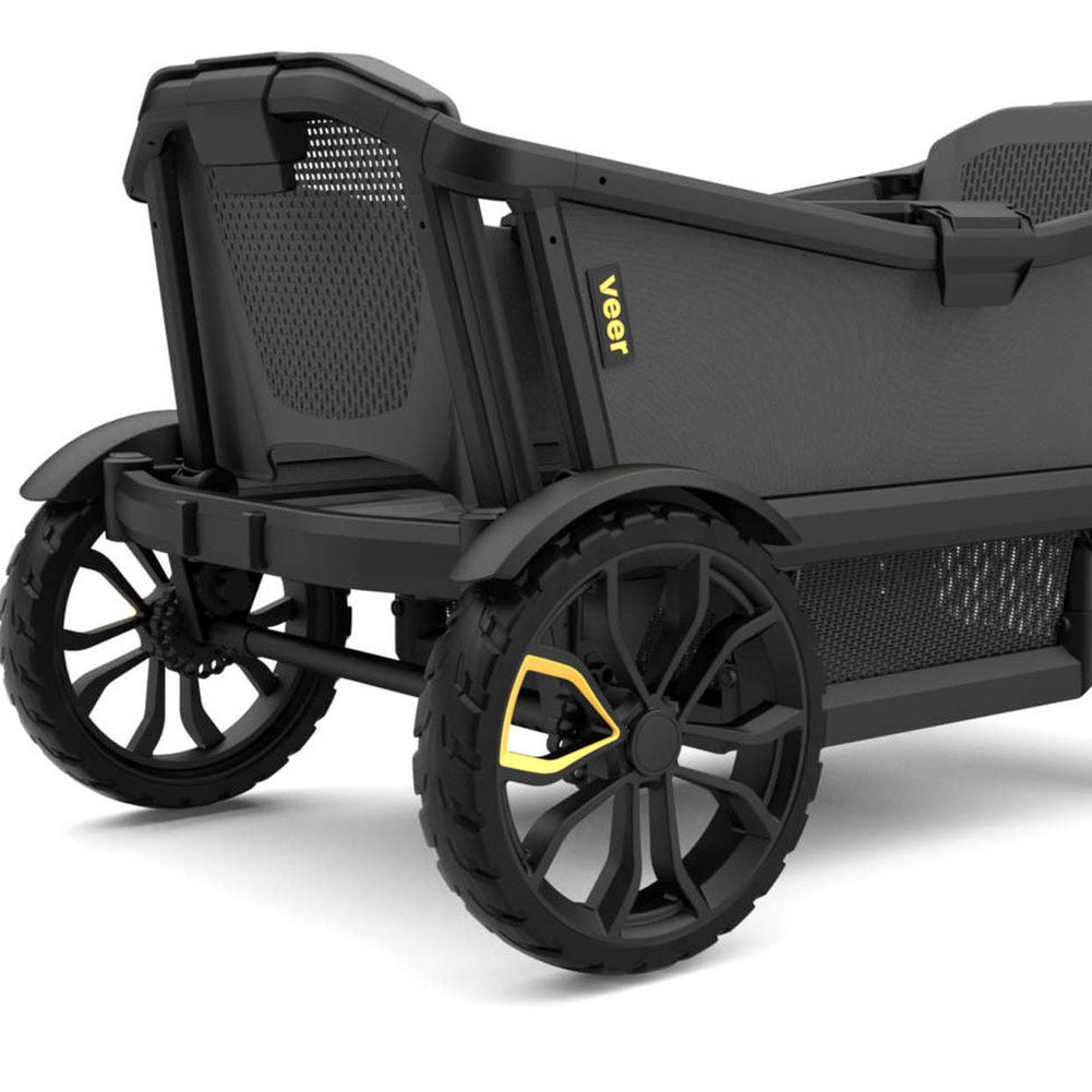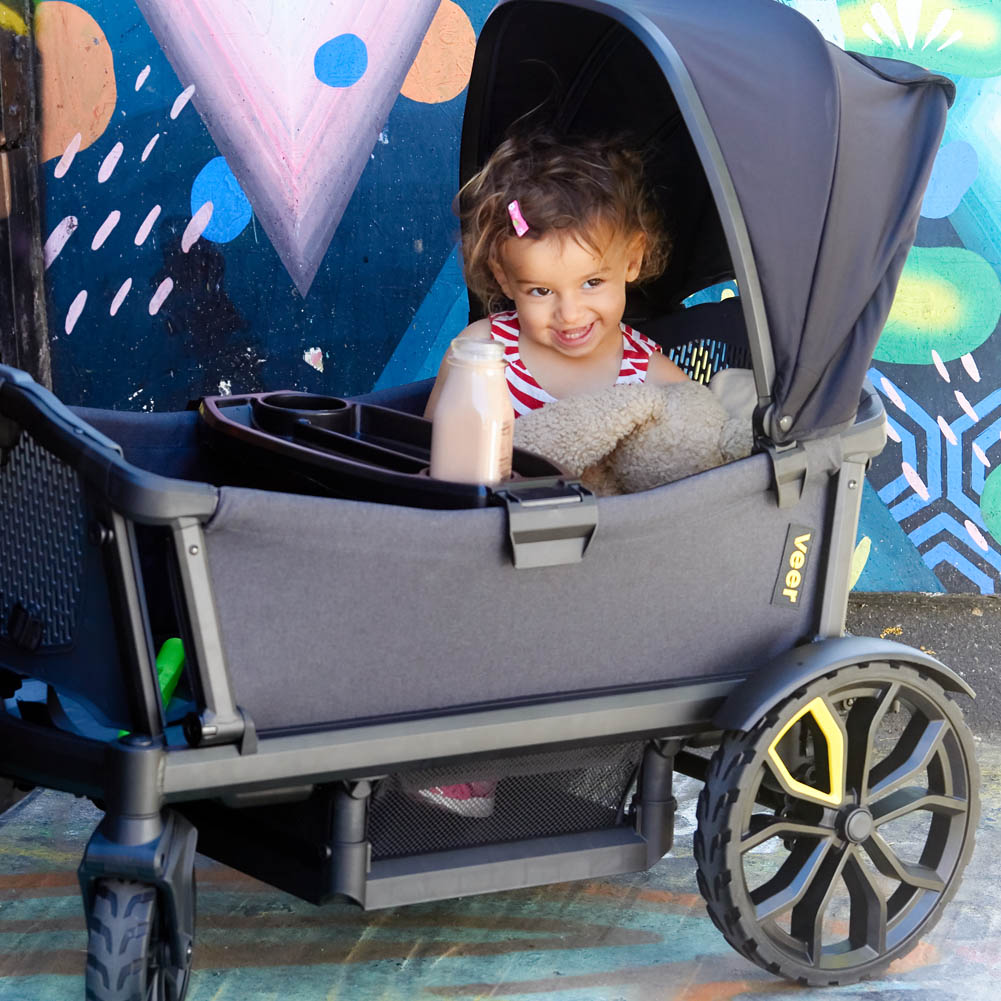 A completely new concept, the Veer All-Terrain Cruiser is the first-ever crossover. It defies conventional labels by combining the functionality and safety of a premium stroller with the classic fun and practicality of a wagon. It is built to last for ages 0-5+ yrs and beyond.