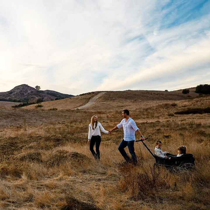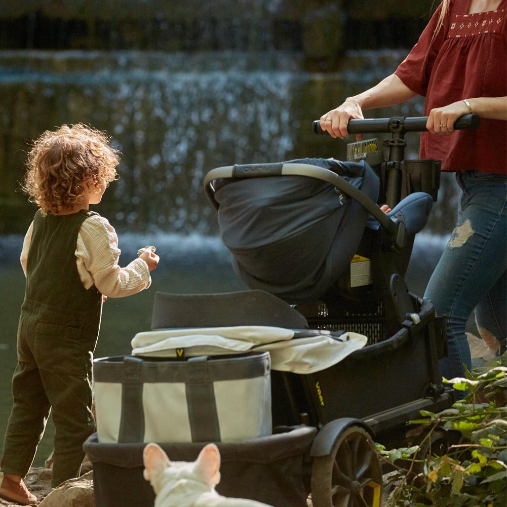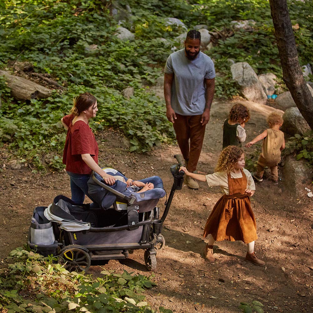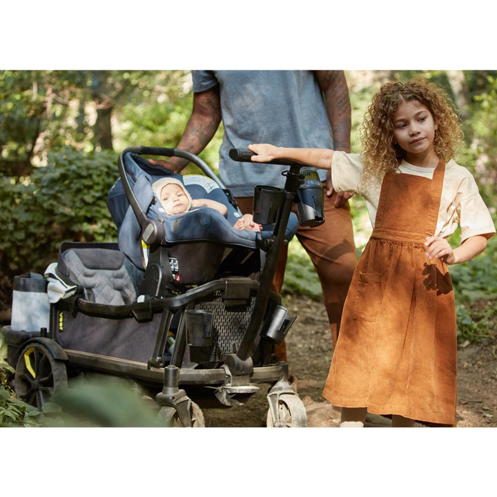 At the end of a busy day, Veer can easily be hosed off, ready for the next adventure. It folds easily for compact storage and is self-standing. With optional accessories, the Cruiser can accommodate an infant car seat, 6 cup holders, two sunshades, and can convert to a bassinet—it is extremely versatile and so fun to use. With larger tires and an innovative steering system, Cruiser was thoughtfully designed for any size family that prefers to blaze their own trail.