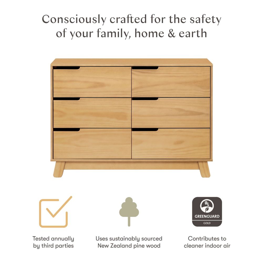 So many onesies, so little time… the babyletto Hudson 6-Drawer Double Dresser is here to help! An upgrade from our best-selling dresser, this six drawer version arrives fully assembled, ready out of the box to keep your babe’s wardrobe neat and organized. Complements the mid-century modern-inspired Hudson 3-in-1 Convertible Crib with matching angular feet. Versatile style to pair with other babyletto designs and fit in any modern bedroom.