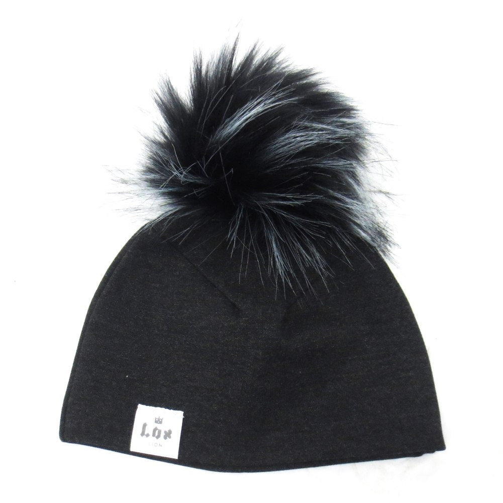 Lox Lion Single Pom Pom Bamboo Beanie - Carbon (SM, 4-12 Months)