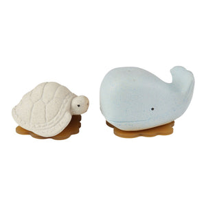 Hevea Squeez N Splash Whale & Turtle Bath Toys - Blue Sky & Vanilla White