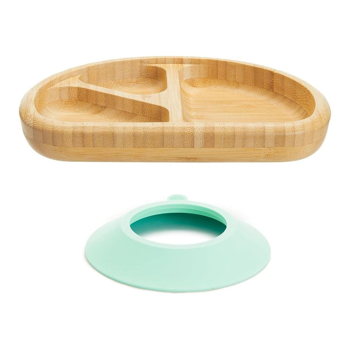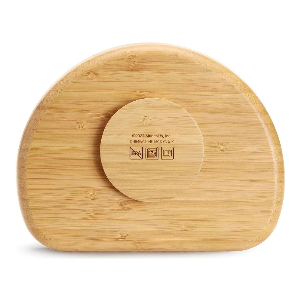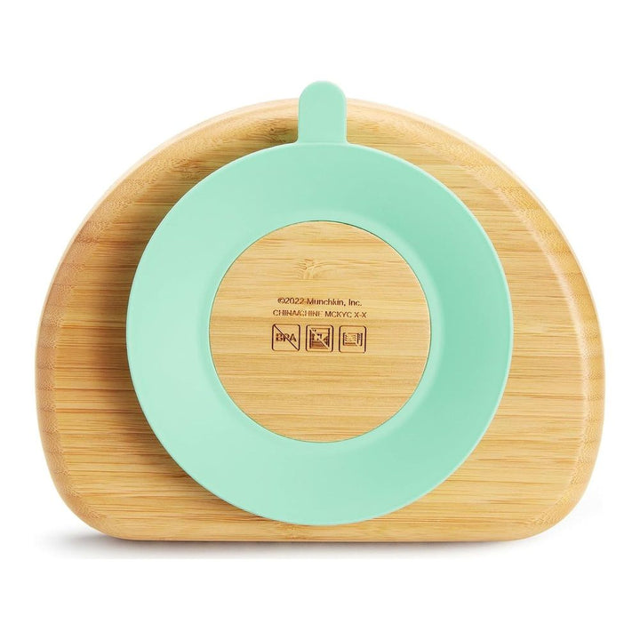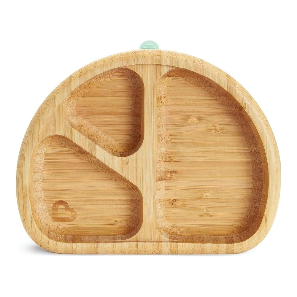 Put sustainability on your daily menu. Munchkin's Bambouâ„¢ mealtime collection is made with non-toxic, renewable bamboo that helps create a greener future for our children and planet. This durable bamboo plate is made for small portions and small hands. With a non-slip silicone base to minimize spills and three high-sided sections that ensure foods don't touch, it's perfect for learning about food groups.