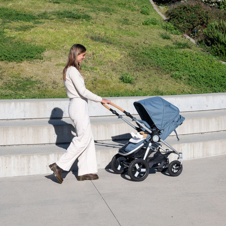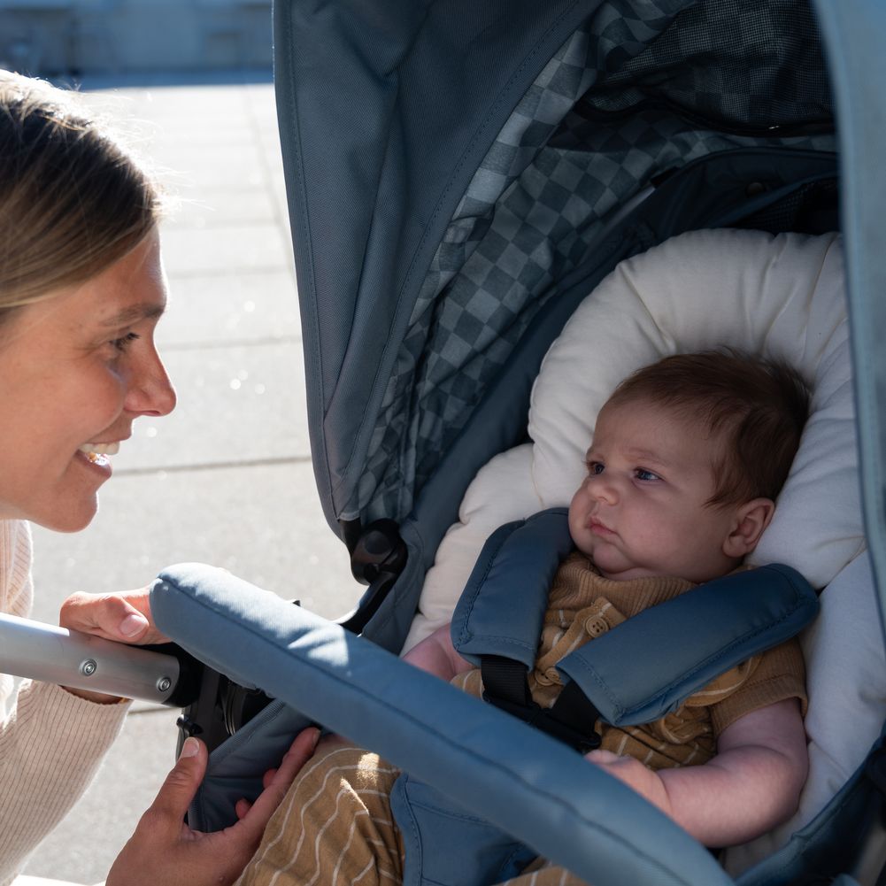 The Bumbleride Era is our reversible seat stroller ready to use at birth with no attachments. Featuring an infant-safe, lay flat seat that faces you until they’re ready to see the sights. Era has all-wheel suspension and air-filled tires with an easy, one-handed push on city streets or bumpy terrain. Its extra-long footwell gives your child room to grow and its small footprint makes maneuvering tight spaces stress-free. Responsibly made and manufactured.