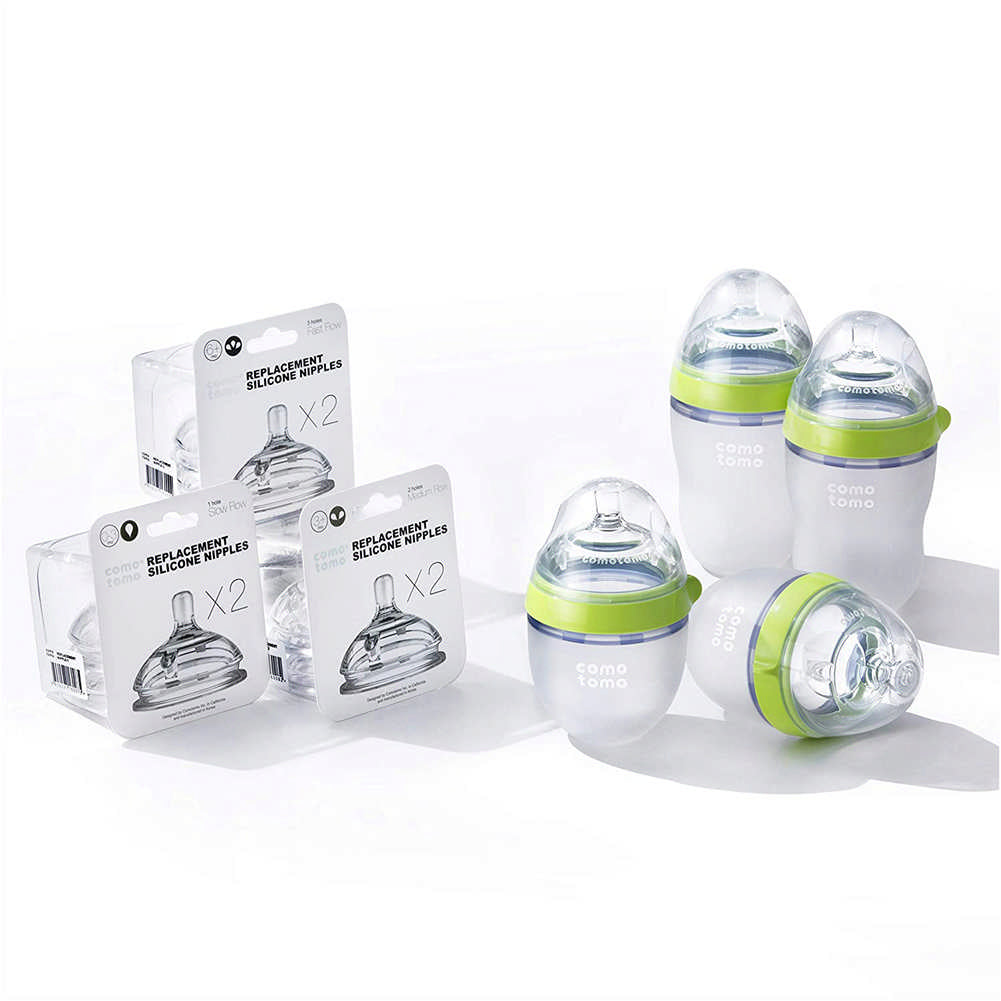 Some mommies aficionados have labeled the Como Tomo Silicone Baby Bottle as 'Breastfeeding in a Bottle'. Como Tomo just likes to think that it's the next best thing to mom! Babies loves drinking from these bottles as they are designed to naturally mimic breastfeeding as much as possible. These bottles are Mommy Inspired and Baby Approved! Comotomo Baby Bottles feature innovative and sensible design to most closely mimic natural breastfeeding.