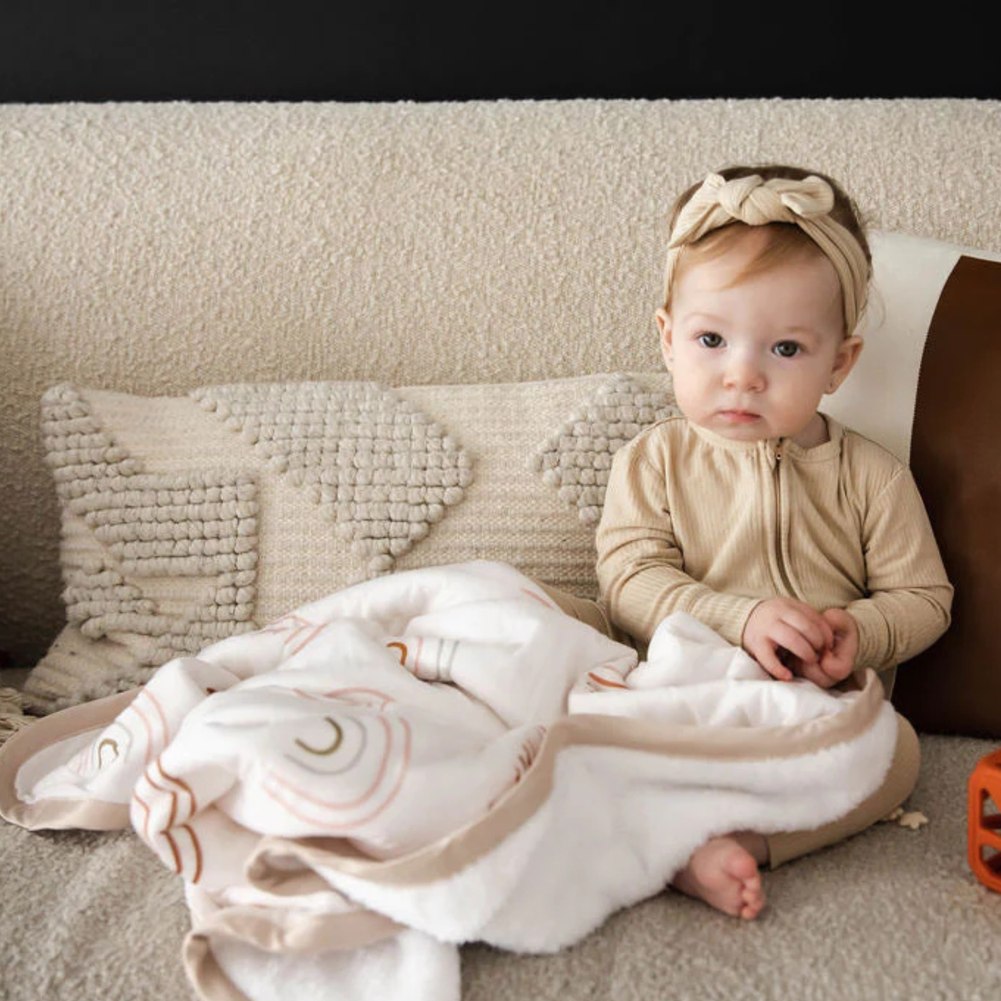 Malarkey Kids have created a cuddly & stylish blanket that will be your baby's best friend. Framed in a satiny fabric, one side is pleasantly plush while the other side is smooth and super snuggly! The Bestie Blanket is soft enough for bedtime, yet durable enough for playtime.