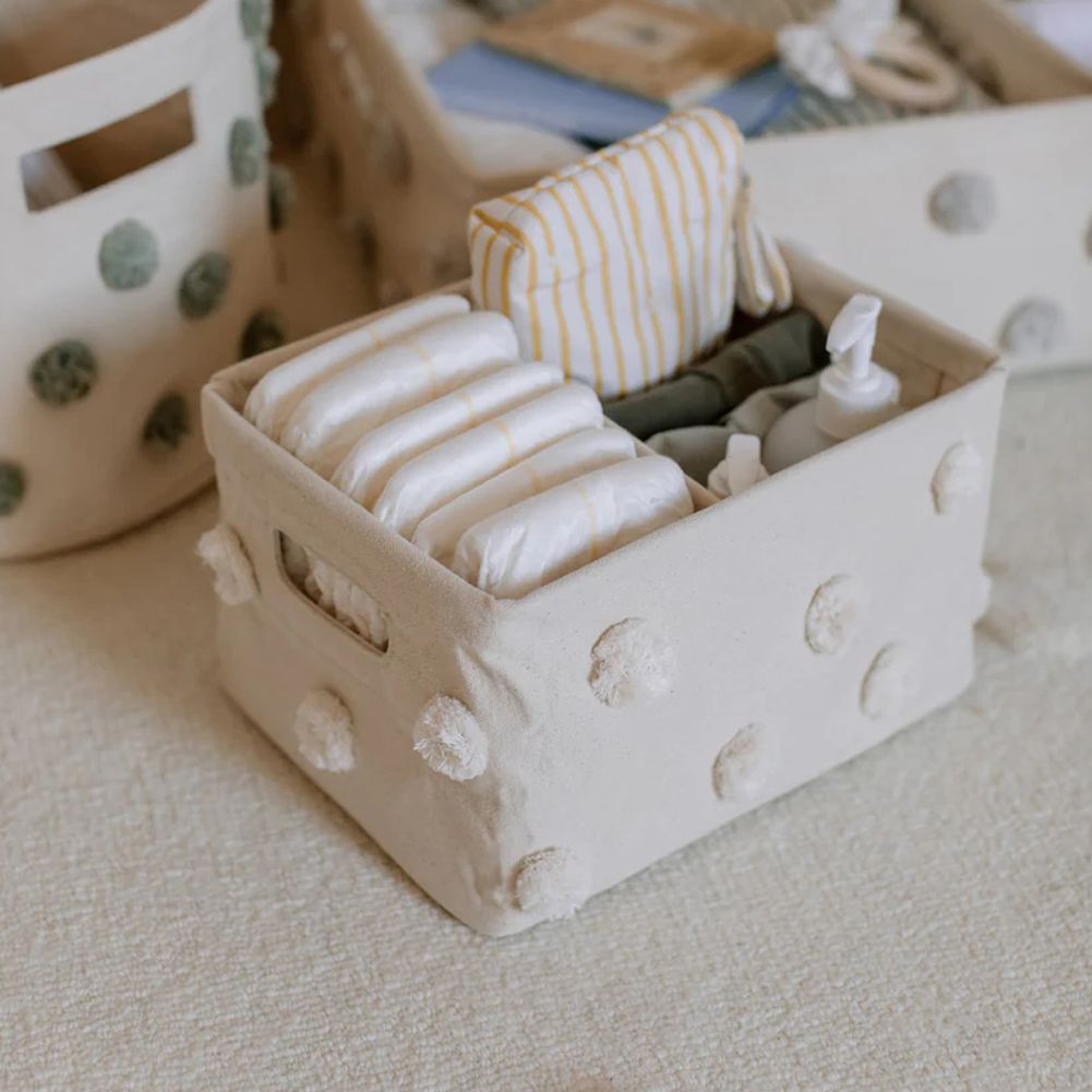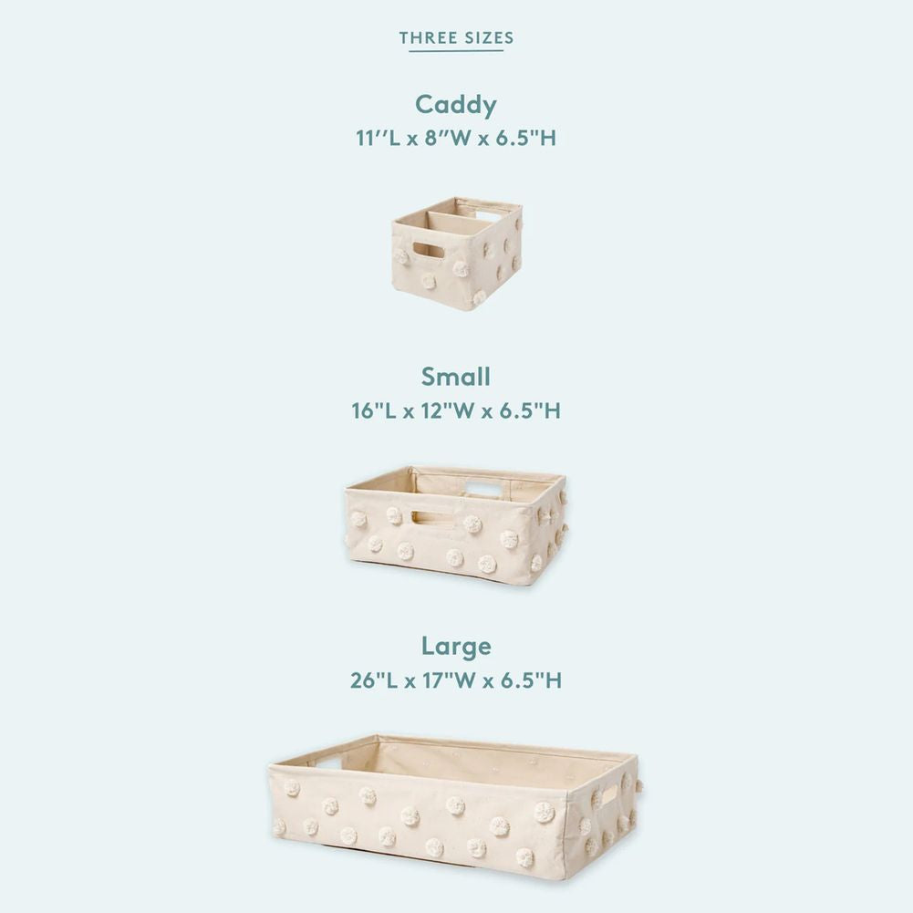 The classic Pom Poms you love, now in a new storage solution. In 3 colors and with a removable divider, the Hideaway Caddy is designed to nest. Fit them under the crib, in a drawer, on a shelf or in your other Hideaway Storage sizes.