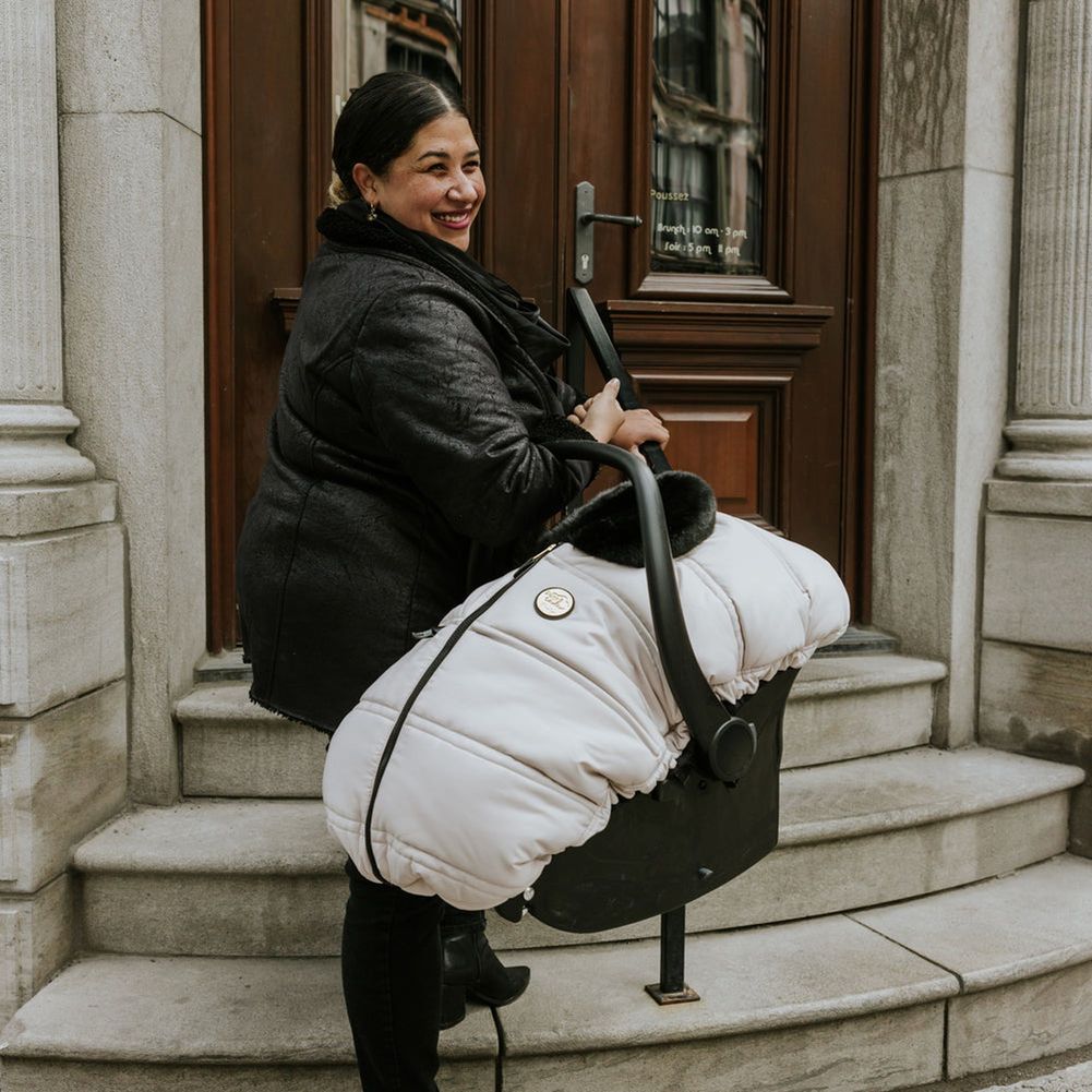 Add a touch of style to your walks with your baby with Petit Coulou's luxury Prestige set. Featuring a soft vegan fur interior and a cozy insulated backing, it offers your baby luxurious comfort and exceptional protection. The 3 seasons car seat cover won't shift or slip when you're out and about in windy conditions. Thanks to its lightweight, water-repellent material and igloo effect, your baby will be protected from the elements and unwanted touches. The only cover on the market to offer structural support to prevent sagging.