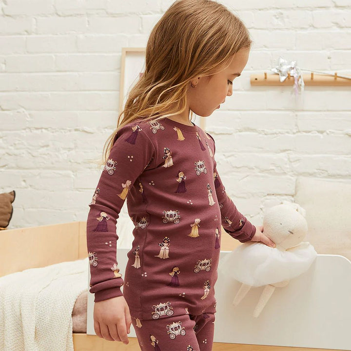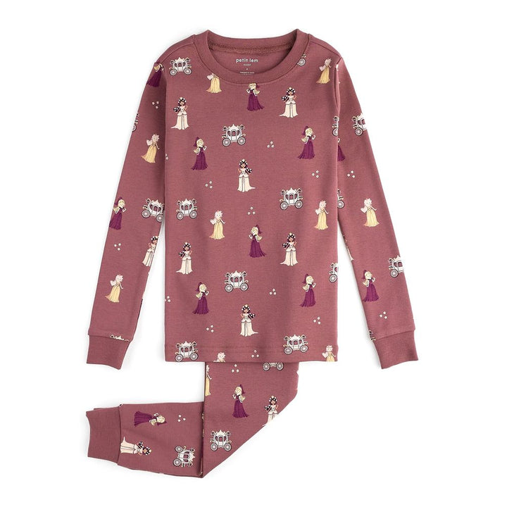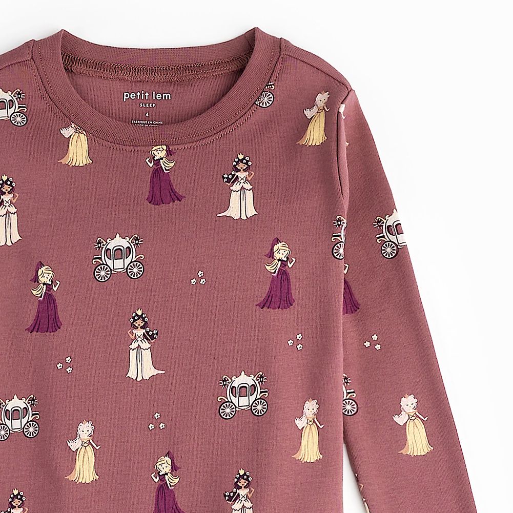 Petit Lem 2-Piece Organic Cotton Ribbed Pajama Set in Princess Print on Merlot
