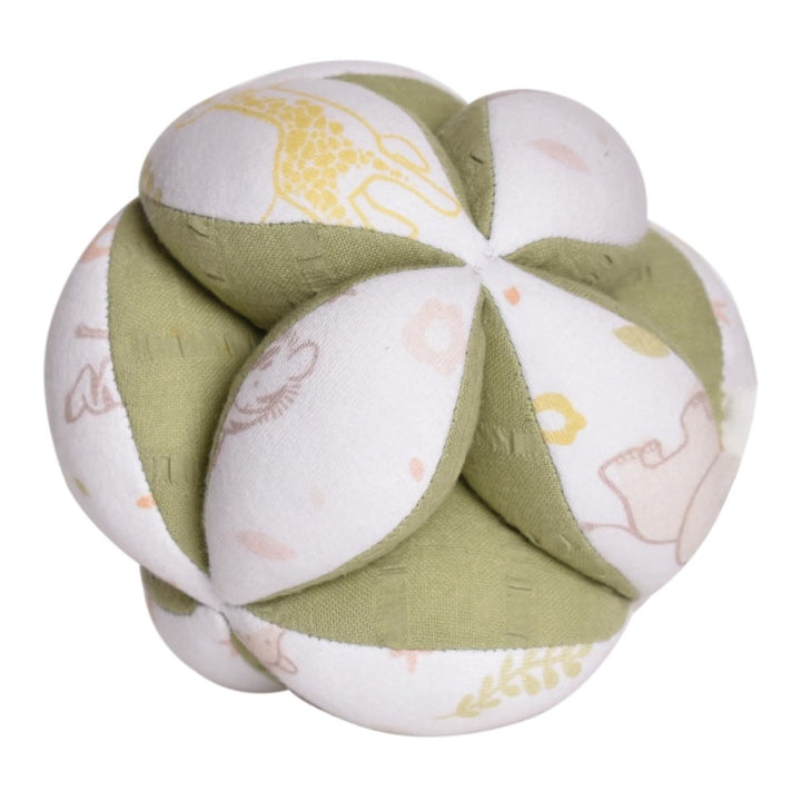 Safari Clutch Ball toy is designed to delight your baby's developing senses. Signature hand painted graphics grab baby's attention visually, while varied textures provide tactile stimulation. It's beautiful organic shell fabrics and Nordic pattern make it the perfect keepsake gift.