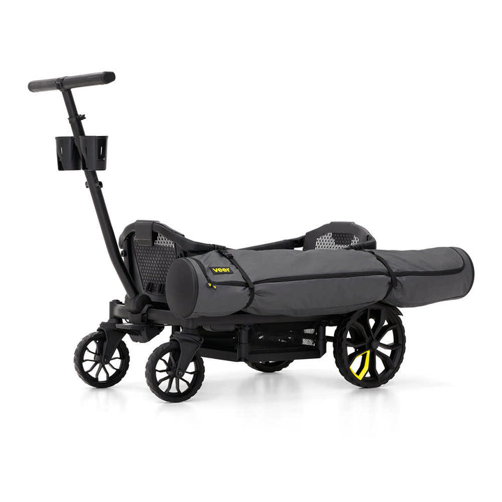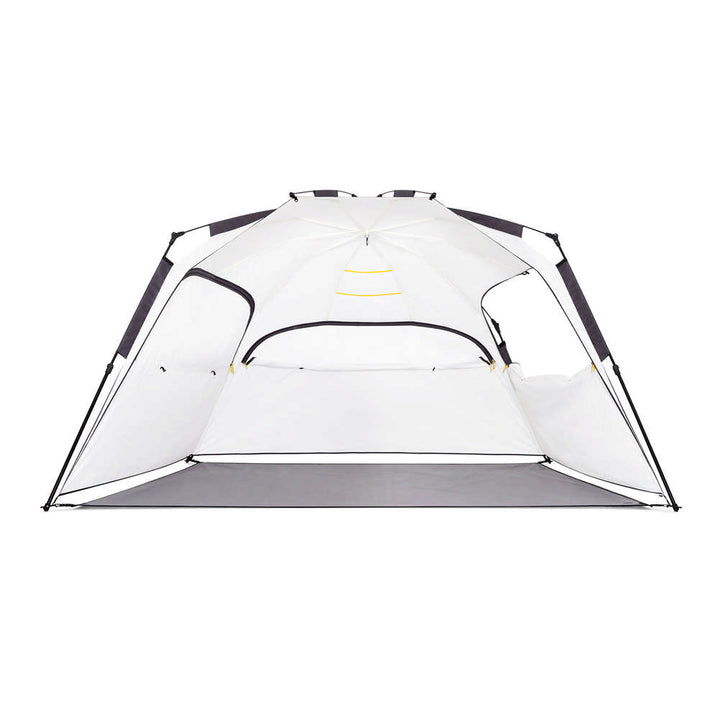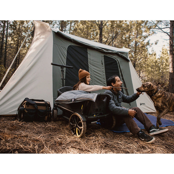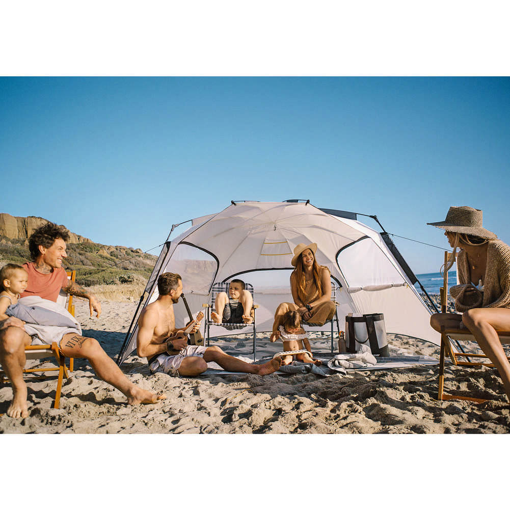 Families love our original Basecamp, a pop-open play yard, so much they asked us to create a family size option. You asked and we created: Family Basecamp. Instantly stay shaded and cool no matter where your day takes you. It is fully assembled, popping open and closing with ease. Three walls provide customizable air flow options with 3-1 zip windows. The water resistant floor will keep you dry. When you are on the sand you can swap the floor for a sand mat that whisks away grit. We know your hands and shoulder are often full, so the Family Basecamp attaches to the side of the Cruiser for easy transportation.