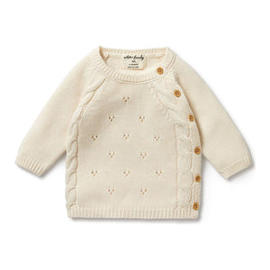 A winter essential for newborns, this Wilson+Frenchy luxuriously soft pointelle knit kimono style cardigan is made from a beautiful blend of cotton, bamboo and wool. This long sleeved knit will...