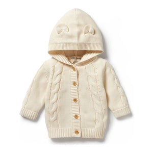 A must-have in every little one's winter wardrobe, this luxurious Wilson+Frenchy cable knit hooded jacket features a button through front and cute bear ears. Made from a beautiful blend of...