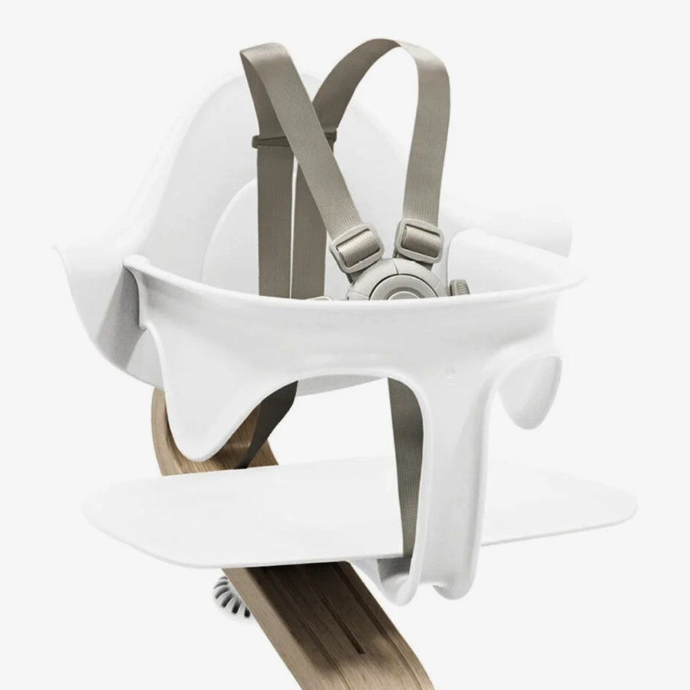 Much like a protective arm around your child, the Stokke® Nomi® Baby Set offers your baby comfort and support as they're learning to sit while still allowing them freedom of movement. Easy to attach, the Baby Set simply clicks on, first underneath the seat and then on the backrest. The rounded, organic contours create a comfortable highchair with unrestricted movement – which is excellent for toddler's development as they explore, taste and interact at the family table. When your child is ready to climb up and down from the chair without help, it is time to remove the Stokke® Nomi® Baby Set.