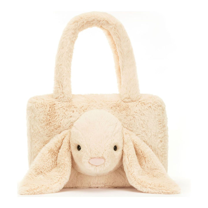 Turn heads as you bound into town with the Jellycat Smudge Rabbit Tote Bag. This rich oatmeal bag has comfy fuzzy handles and a stunning lop-eared bunny head. Soft but sturdy, with a cotton lining and silver zipper with Jellycat tag, it's the kookiest way to carry your things.