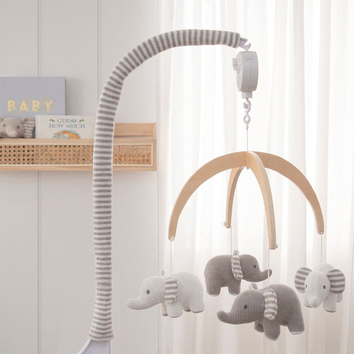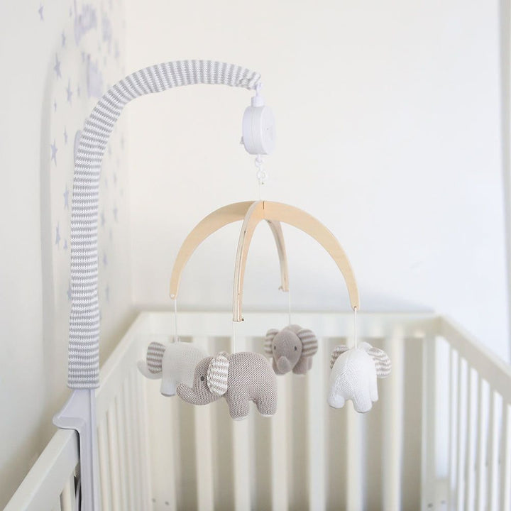 With its gentle rotating motion, soft melodies, and adorable hanging characters, this mobile creates a soothing and entertaining environment that stimulates your baby's senses and encourages visual tracking. As it rotates gracefully, soft melodies fill the air, while charming characters dance and twirl, igniting visual curiosity. Designed to captivate and stimulate, this mobile encourages early development and fosters a sense of wonder in your little one.