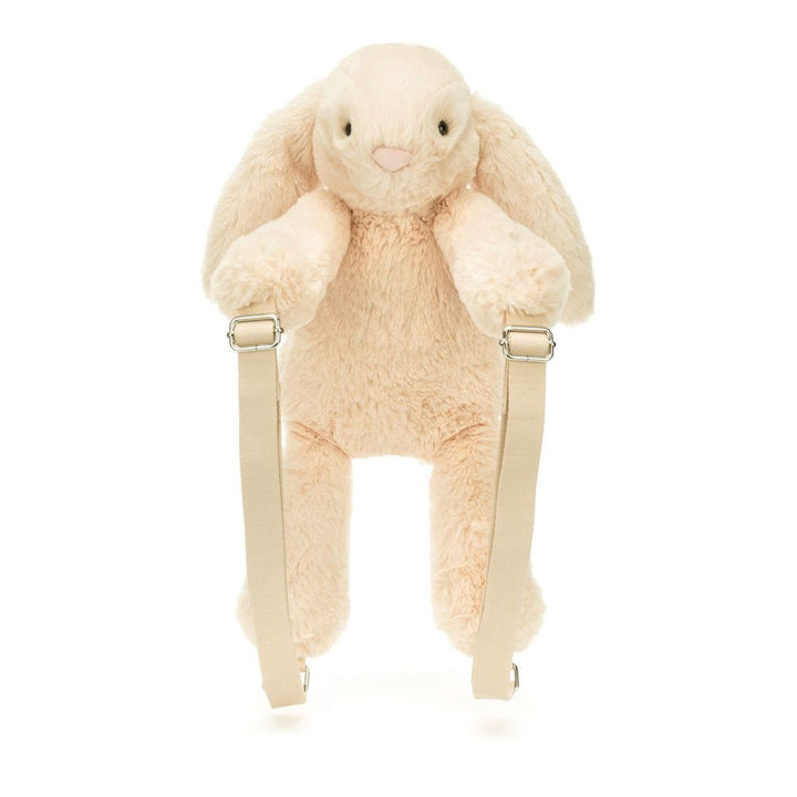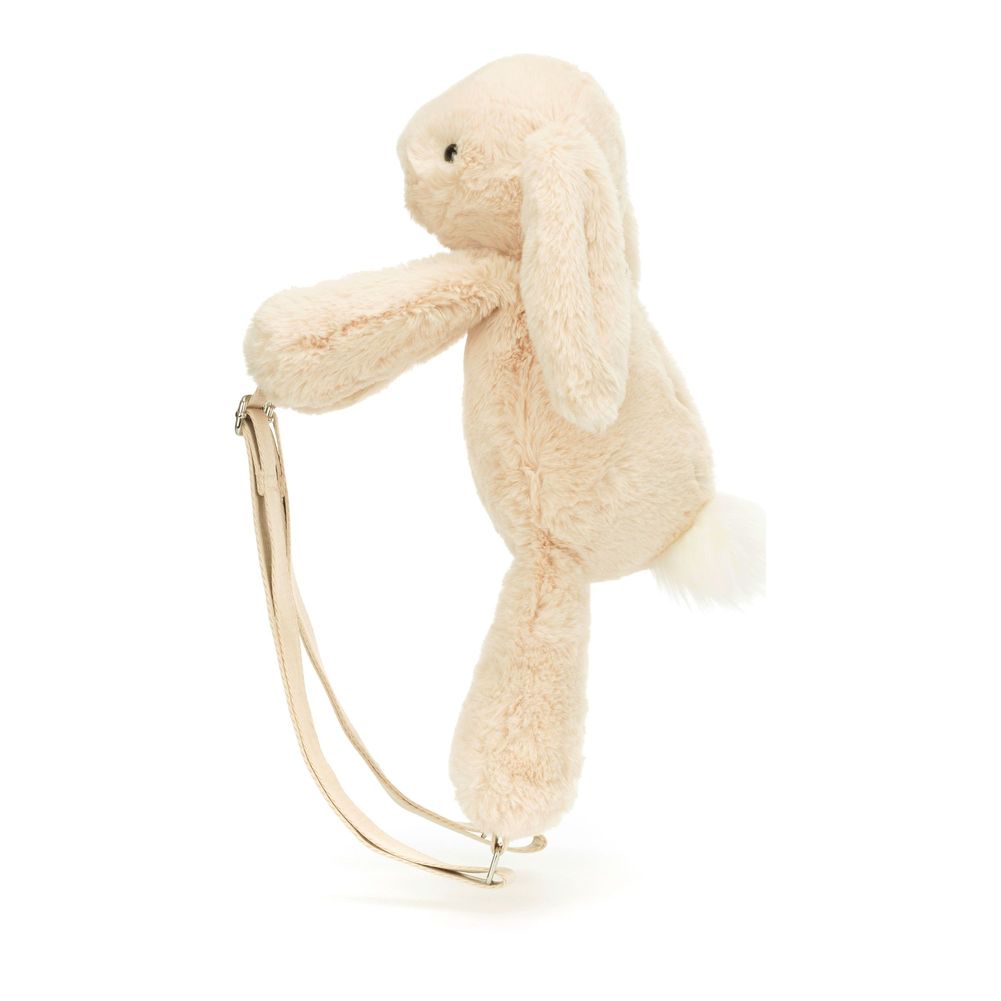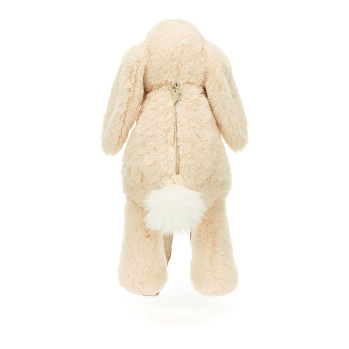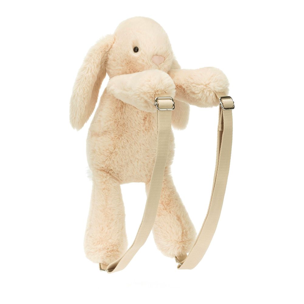 Wherever you bounce, take everything you need in the Jellycat Smudge Rabbit Backpack. Soothing and soft in oatmeal fur, with a snowy bobtail and long lop-ears, this fully-lined bag has a silver zipper and Jellycat tag. With adjustable straps in strong beige webbing, this bunny's a travel essential.
