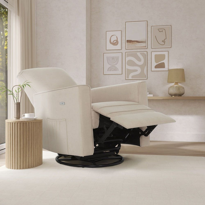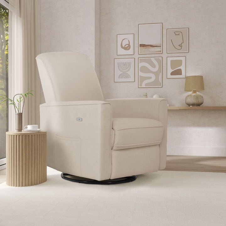 Evolur Monroe Glider with Swivel Base and Power Recline - Light Sand