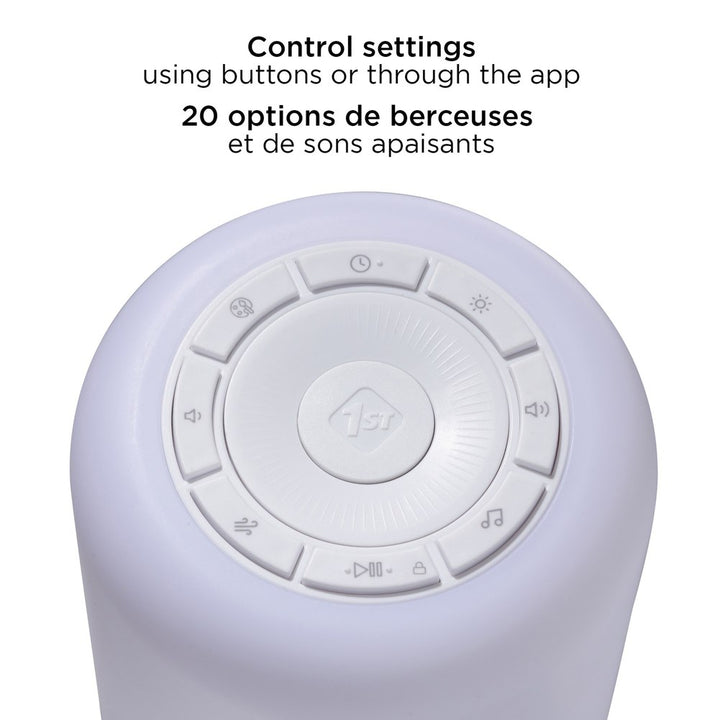 - Nightlight and sound machine with 20 lullabies and soothing natural sounds