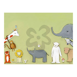 Animal friends of all shapes and sizes gather to say hello on this adorable stretched canvas piece.Wall art is reproduced in our San Diego studios using the best digital reproduction...