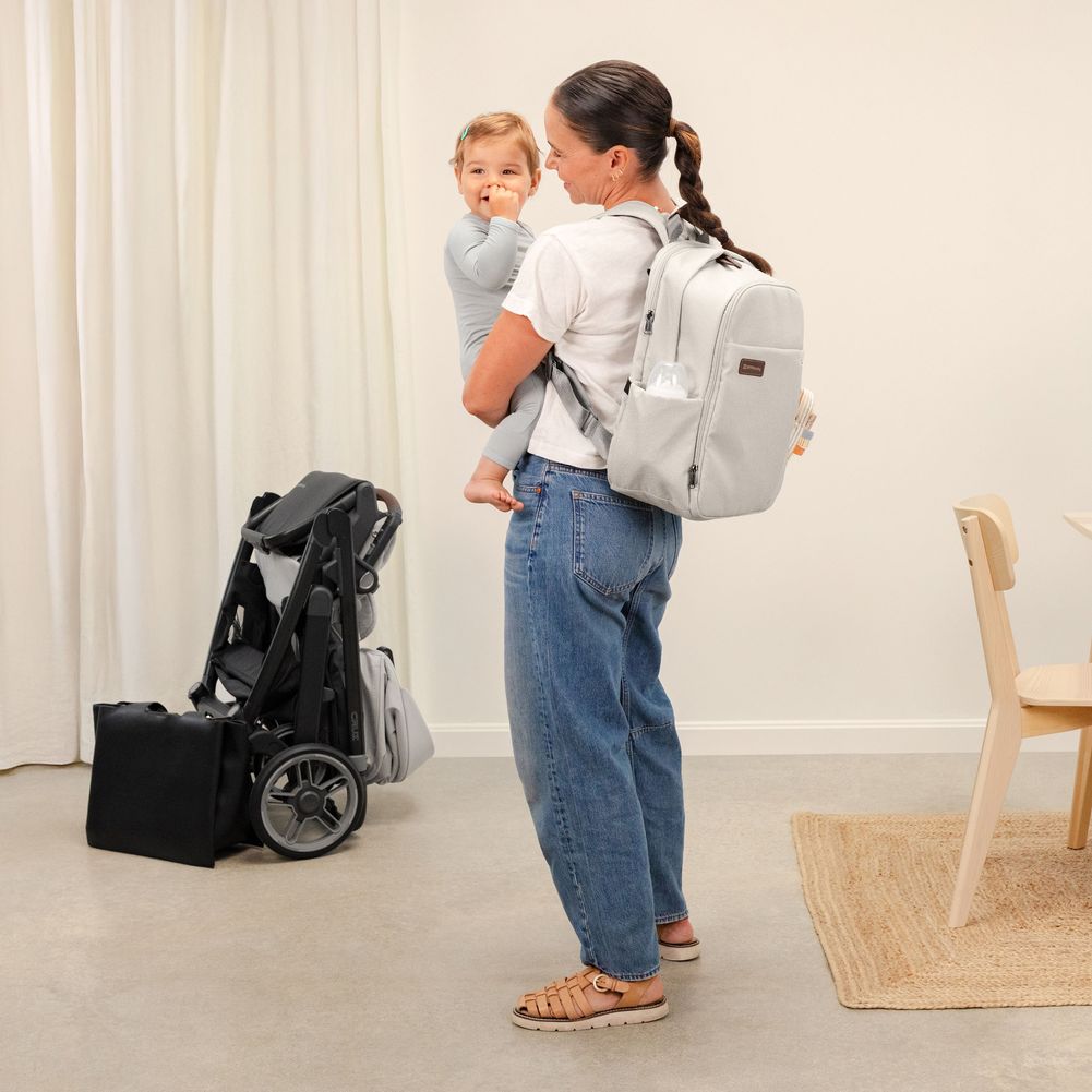 UPPAbaby Changing Backpack V2 features a new design and upgraded functionality to meet the needs of today’s families on the go. The redesigned version offers a larger capacity and highly requested features, such as: water bottle pockets, a laptop sleeve, a luggage sleeve for easy travel, and padded shoulder straps for added comfort.