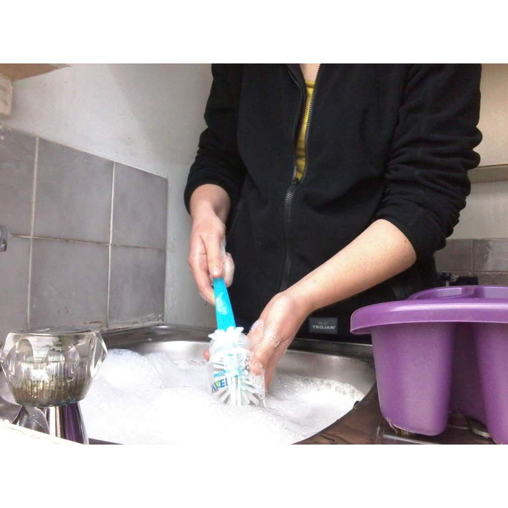 Easily clean and care for your baby's feeding products with the slim, versatile Philips Avent Bottle and Nipple Brush in blue. With a curved brush head, molded handle-tip, and durable bristles, the brush effectively cleans bottles, nipples, and feeding equipment without scratching or damaging. A smart solution for cleaning your baby products, this dishwasher-safe brush can be hung up for easy storage or drying.