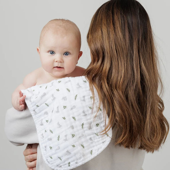 Lulujo burp cloth is an everyday necessity for daily care with your baby. Made with three layers of our ultra soft muslin, this absorbent over-the-shoulder cloth will keep you clean and dry while being gentle on baby’s skin. Made with the same high quality muslin that Lulujo are best known for in sweet, modern prints.