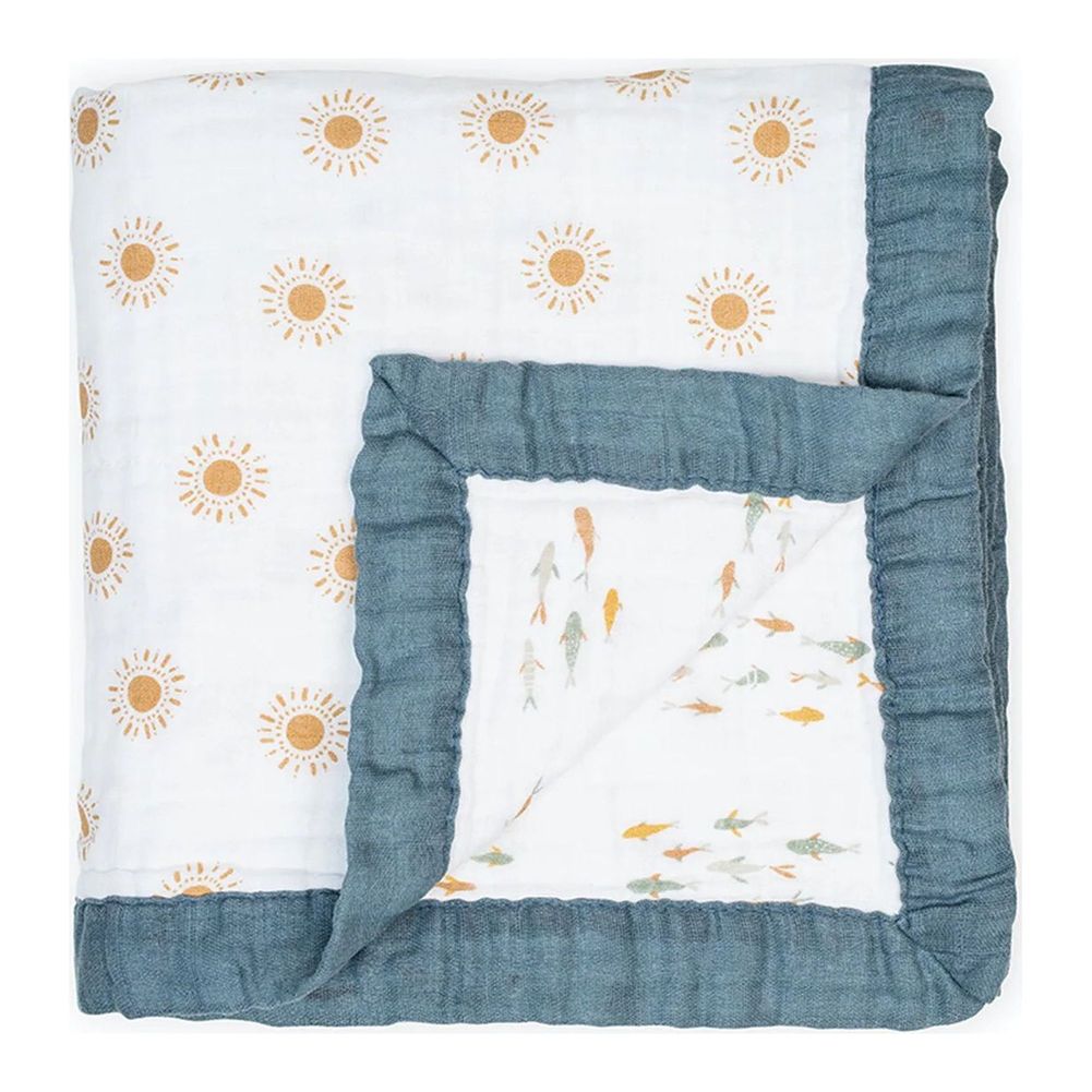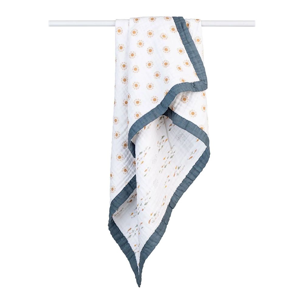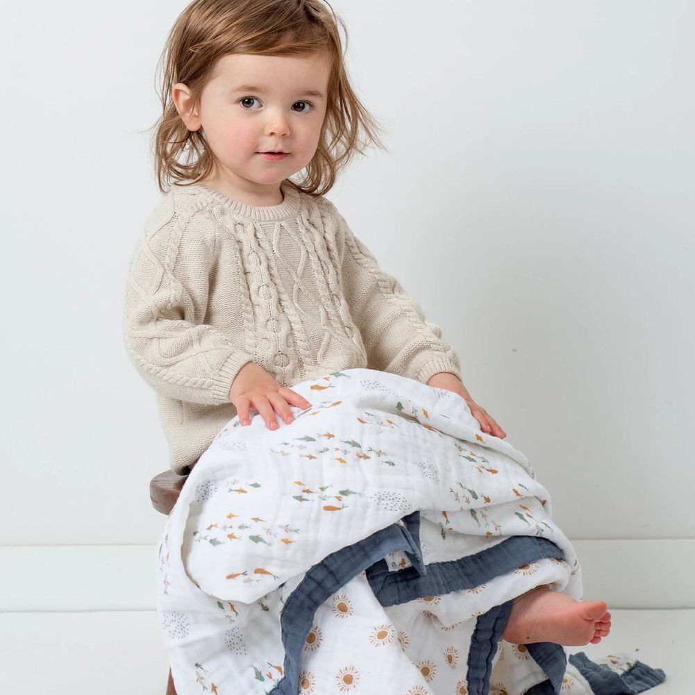 Warm and cozy for play, cuddles, and bed time. This beautifully soft quilted blanket is perfect for your little one to use throughout their childhood. Made with three layers of soft, premium cotton muslin with reversible prints