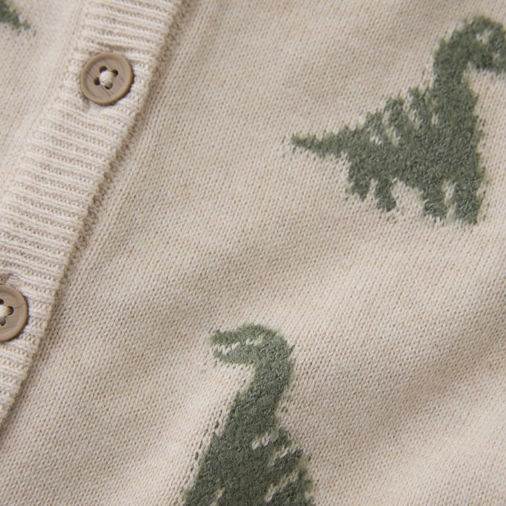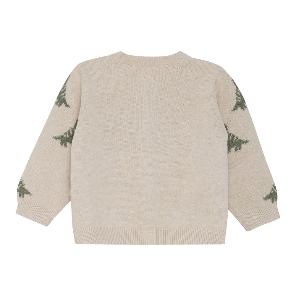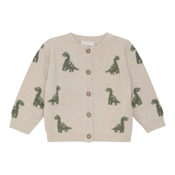 Minymo Organic Cotton Knit Cardigan - Dinos on Light Beige Melange
