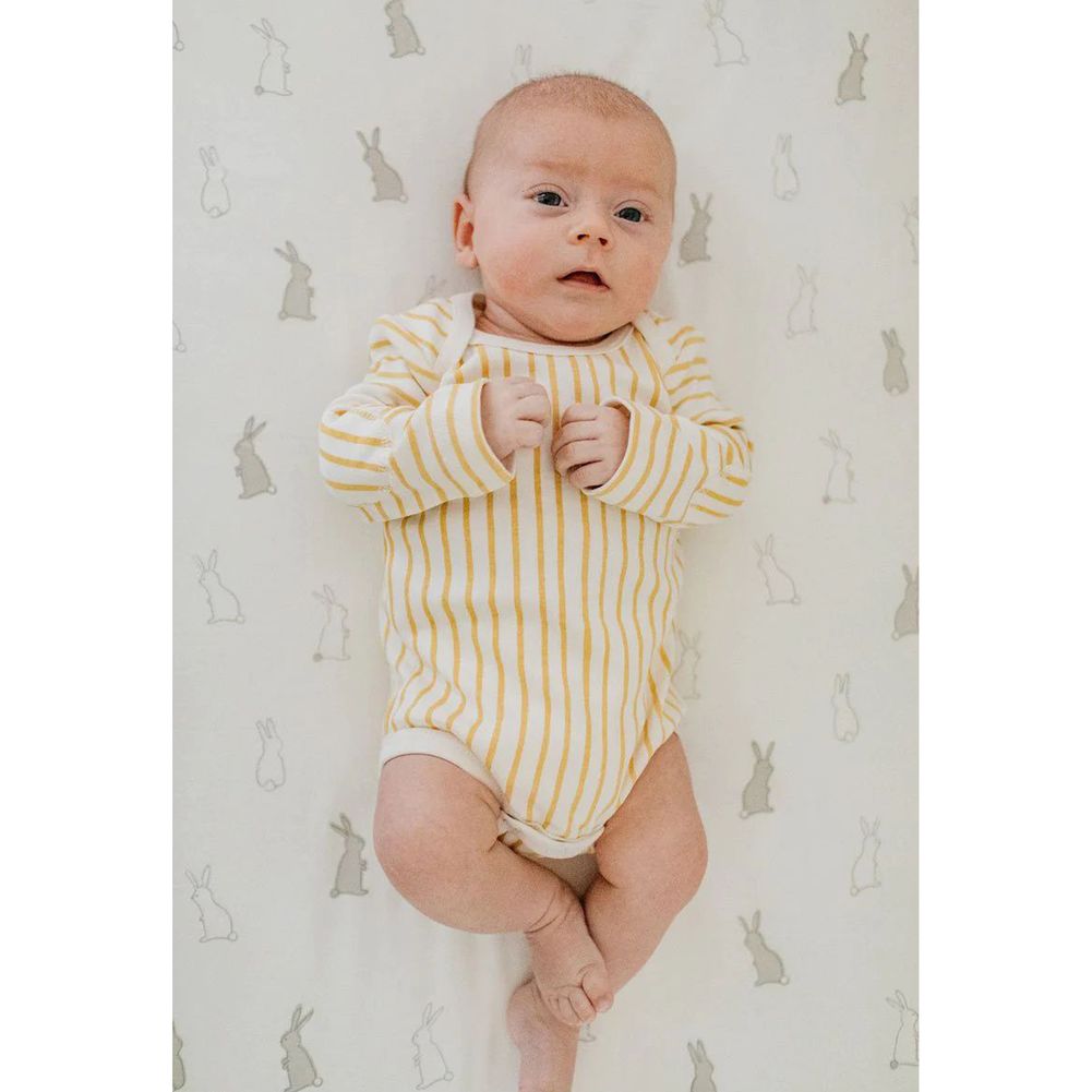 Crafted in brushed organic cotton, this breathable and soft crib sheet will give your little one the perfect night’s sleep. Designed to ensure a safe snug fit, Peher's baby crib sheet fits cots and mattresses up to 52" x 28" x 8" and stay soft wash after wash.