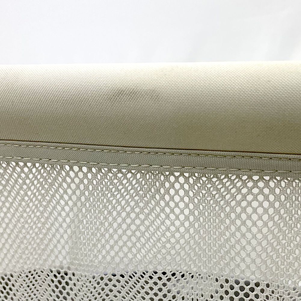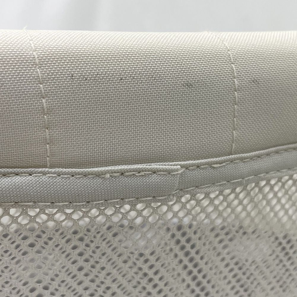 Condition: Packaging damaged and has a different serial number than the item inside. Item has been thoroughly inspected and cleaned. Leg, mattress, and mattress cover have been replaced with new ones from the supplier. Some slight discoloration on the bassinet frame and mesh. Otherwise, item is in good condition.