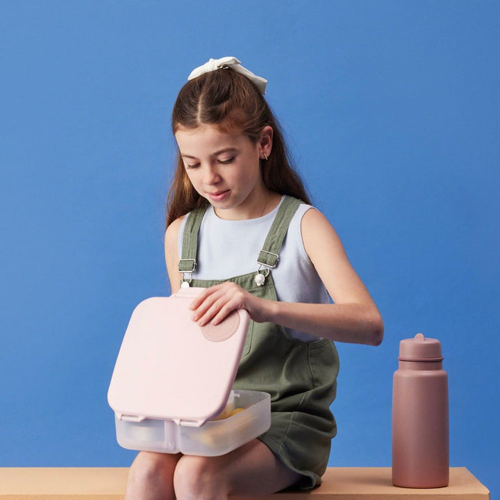 Kids love different choices throughout the day, so b.box designed a lunchbox that offers parents and kids more flexibility. The lunchbox features a large compartment that fits a whole sandwich. Plus, sitting underneath the tray is an included gel cooler pack to keep food fresher and cooler for longer. Or, remove the sandwich tray and the compartment now easily fits pasta and salads. Its unique flexi whole fruit holder lets you store a whole apple, as the stretchy seal bends around the shape of your fruit – no need to cut fruit into smaller sizes! Leak-proof silicone seals lets you store wet foods like watermelon and yoghurts (no liquids). The custom divider slides across enabling parents to adjust the compartment size as they need, or remove it to fit a whole banana or wrap.