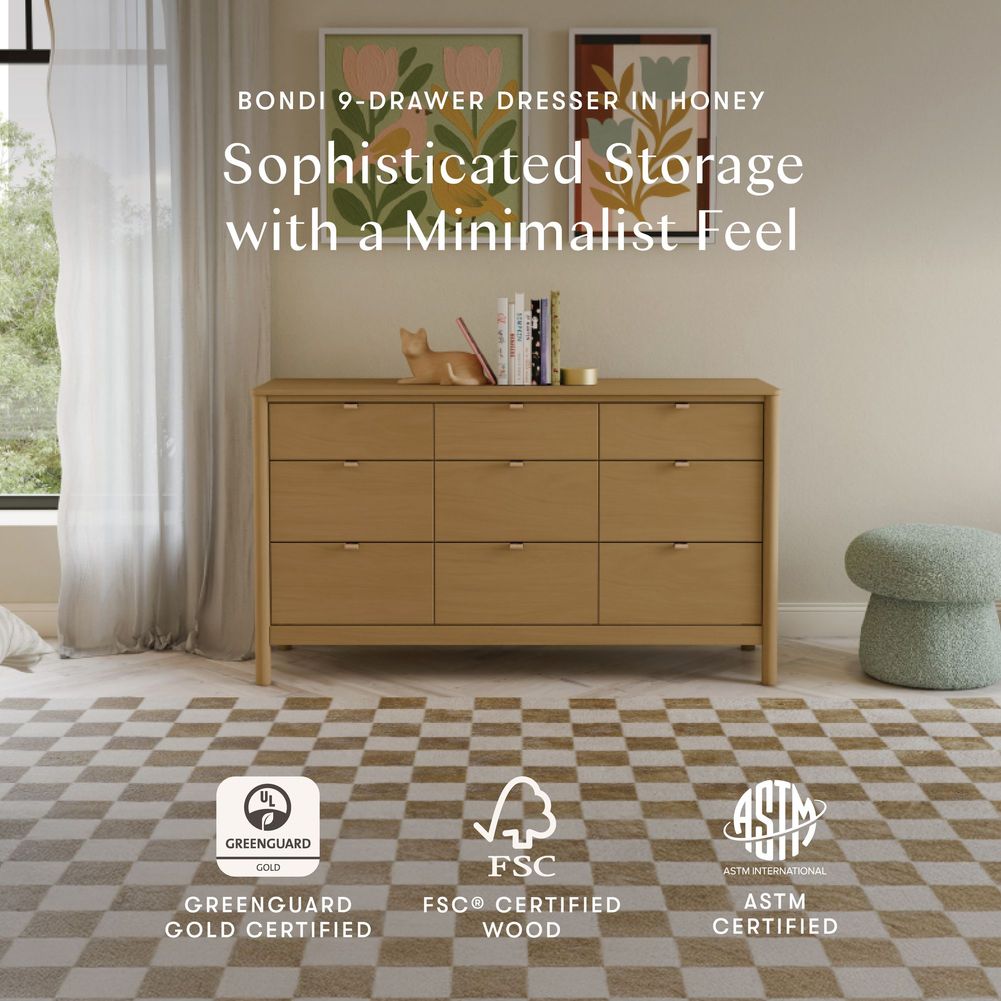 Designed to grow alongside your kiddo and keep up with their constantly changing needs, the Bondi 9-Drawer Assembled Dresser combines clean lines and rounded posts, plenty of storage, and soft vegan leather pulls for a modern look that fits right into any big-kid space. With nine roomy drawers and a fully assembled design (yes, really!), it’s ready to handle everything from tiny socks to oversized imaginations.