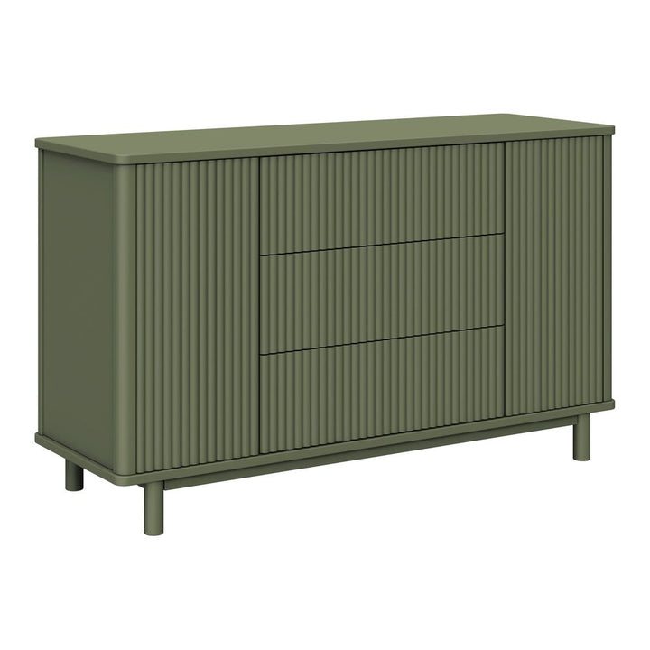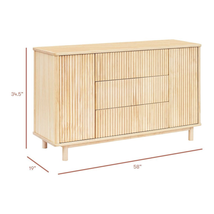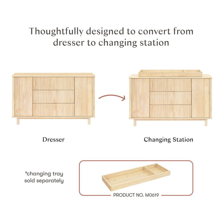 - SOPHISTICATED YET VERSATILE DESIGN: With smooth, rounded corners and elevated fluted tambour paneling, the Pogo dresser was designed to be a statement piece for the modern nursery and beyond. Seamlessly transition from changing table to dresser by incorporating optional removable changing tray for those early years (changing tray #M0619 sold separately).