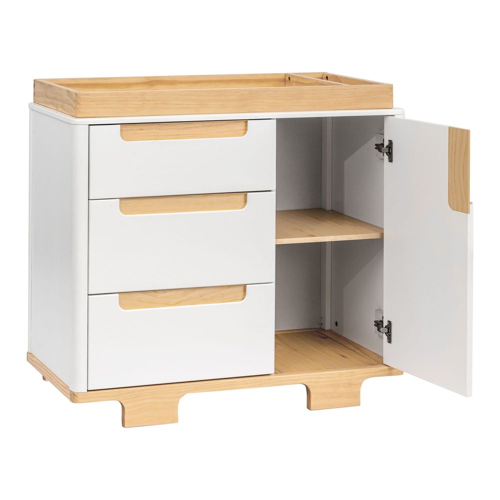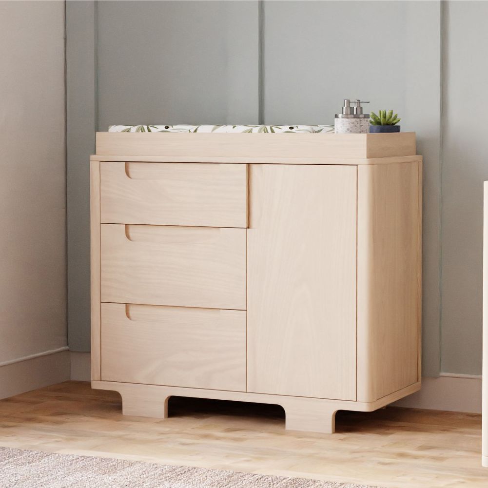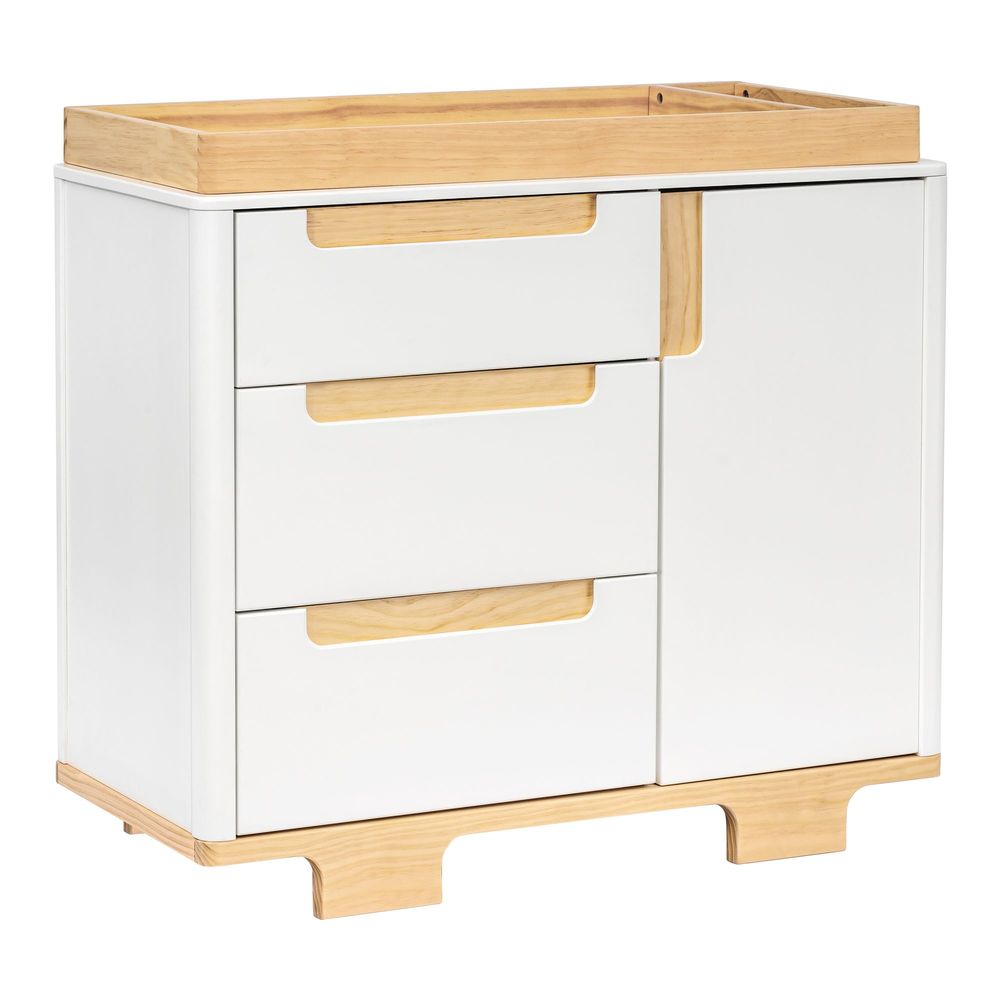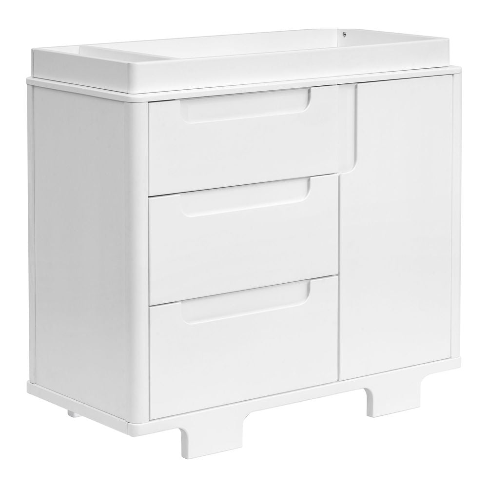 Designed to complement the Yuzu 8-in-1 All-Stages Crib, the Babyletto Yuzu 3-Drawer Changer Dresser marries form and function with playful arched feet, gently curved corners, included changing tray, and plenty of storage with 3 drawers and 1 spacious cabinet. Whether you're going for a classic, modern, or eclectic look, this versatile dresser is a perfect statement piece in the nursery.
