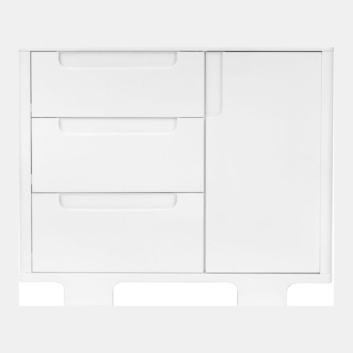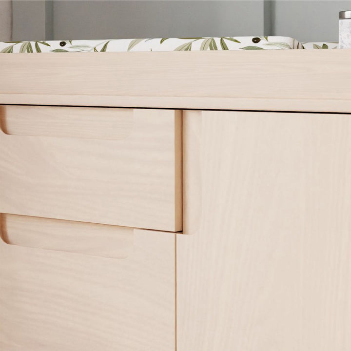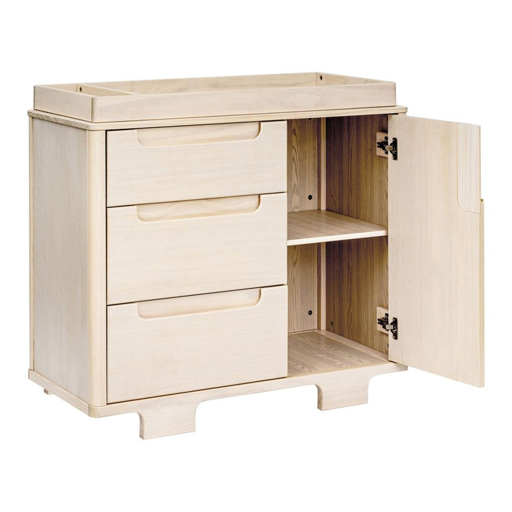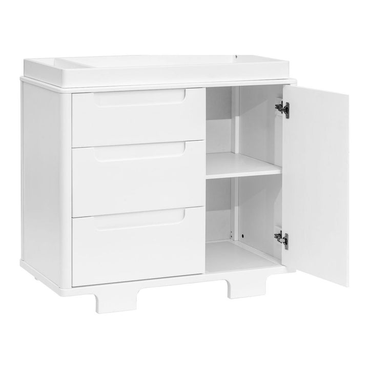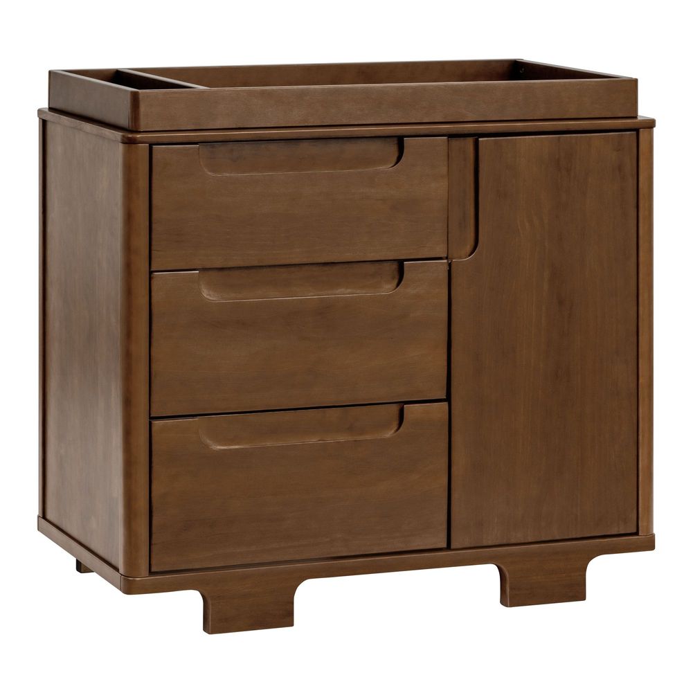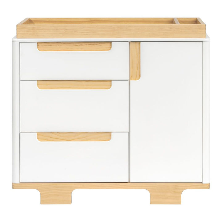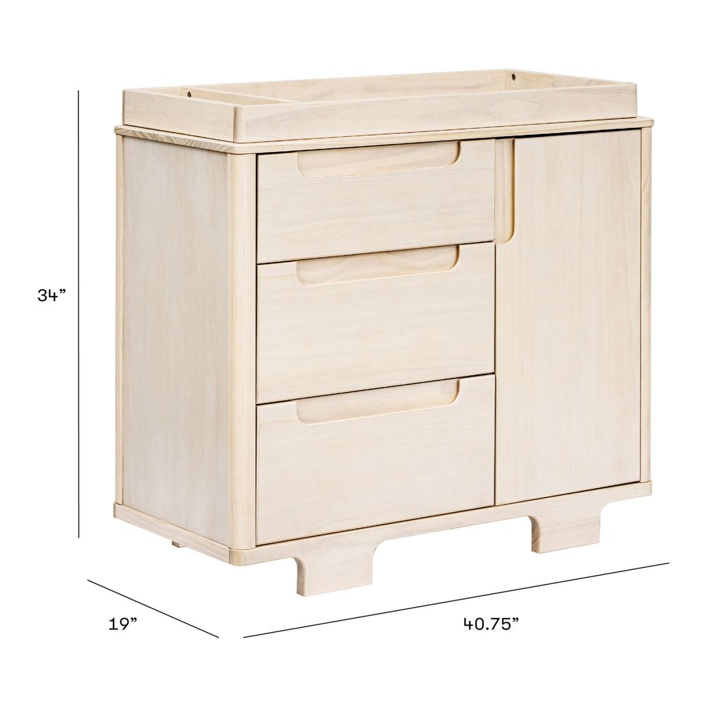 Designed to complement the Yuzu 8-in-1 All-Stages Crib, the Babyletto Yuzu 3-Drawer Changer Dresser marries form and function with playful arched feet, gently curved corners, included changing tray, and plenty of storage with 3 drawers and 1 spacious cabinet. Whether you're going for a classic, modern, or eclectic look, this versatile dresser is a perfect statement piece in the nursery.