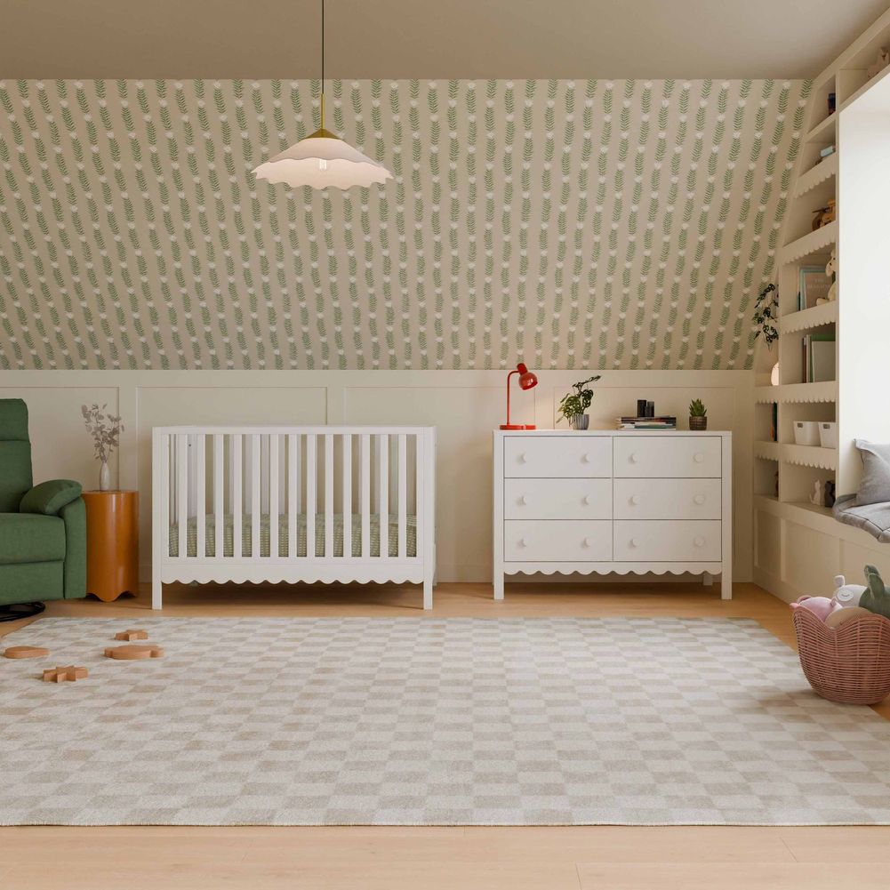 From its charming scallop detailing to its playful colors, the Sammy Scallop 6-Drawer Dresser easily transitions with your little one from baby to teen. Paired with its matching 4-in-1 convertible crib and bookcase, the Sammy Scallop Collection ensures that every moment with your little one is filled with style and joy.