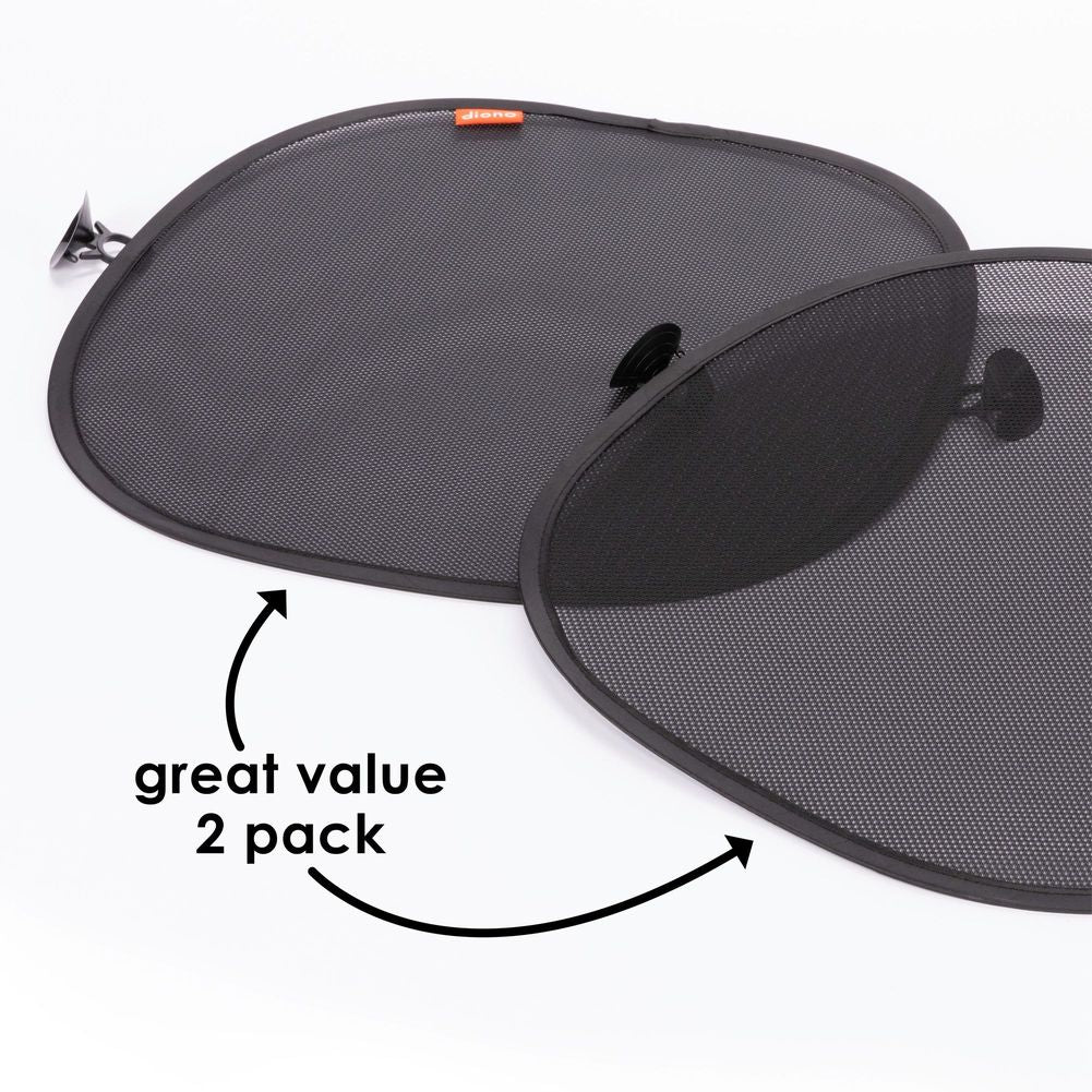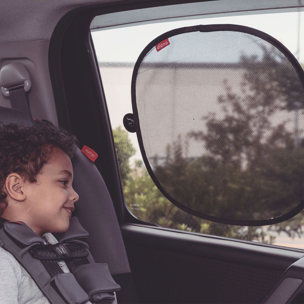 The Diono Sun Stopper 2-Pack is the perfect combination. Whether front or rear facing, the solar mesh panels protect from direct sun and reflected glare, keeping little travelers cooler and more comfortable. The ‘pop-open’, design aids a quick and easy installation, the suction cups attach securely to most vehicle side/rear windows, while not inhibiting the view to the outside. Sun Stoppers are simple to remove, and conveniently fold flat to store in the back-seat pocket or in your trunk. We’ve thought of everything so you don’t have to.