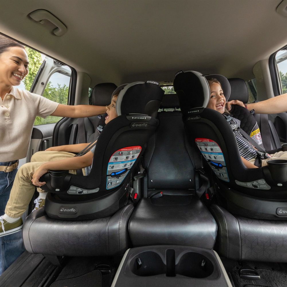Got a compact vehicle and a little one on the way? Check out the Evenflo® Revolve360™ Slim 2-in-1 Rotational Car Seat! We slimmed the exterior of our revolutionary car seat to create a 16.7” footprint without sacrificing your child’s seating space or safety. You can fit more of what you love into your backseat with more room for passengers and your growing family!