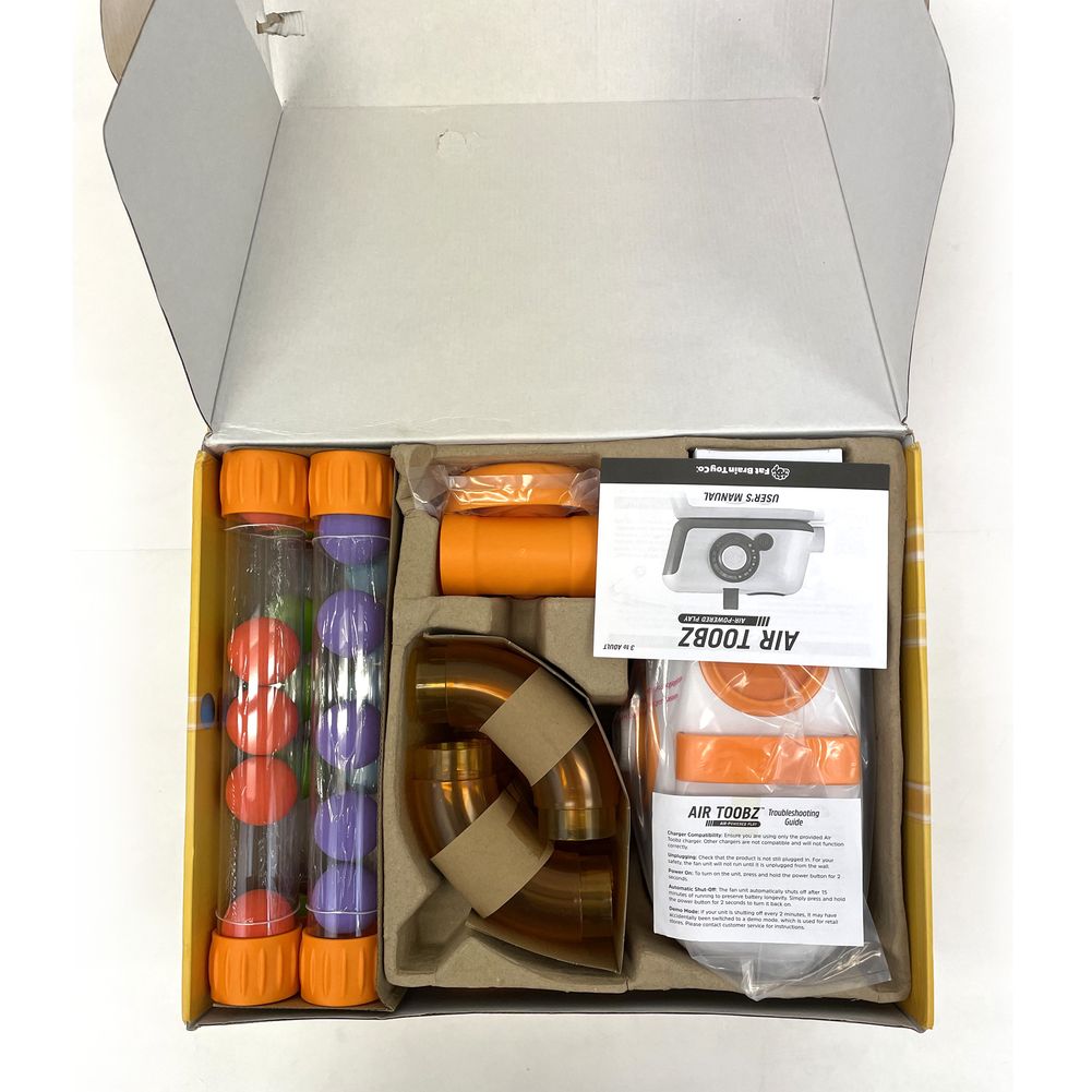 Arrange the tubes and connectors in any way you can imagine with Fat Brain Toys' Air Toobz. Create loops and swirls. Weave them under tables and over desks. Then, switch on the turbine and let the experimentation begin... Can you make the foam balls leap from one tube to the next, or hover in mid-air, or go around and around in an endless cycle? Or, what happens when you set it to low speed vs high speed? What happens when you load the tubes with all the balls, then turn it all the way up? With hours of runtime and loads of balls, tubes, connectors, and accessories included, kids (and adults) will never want to stop exploring!