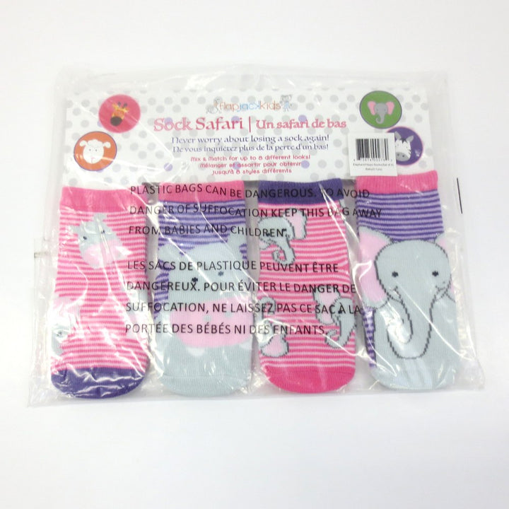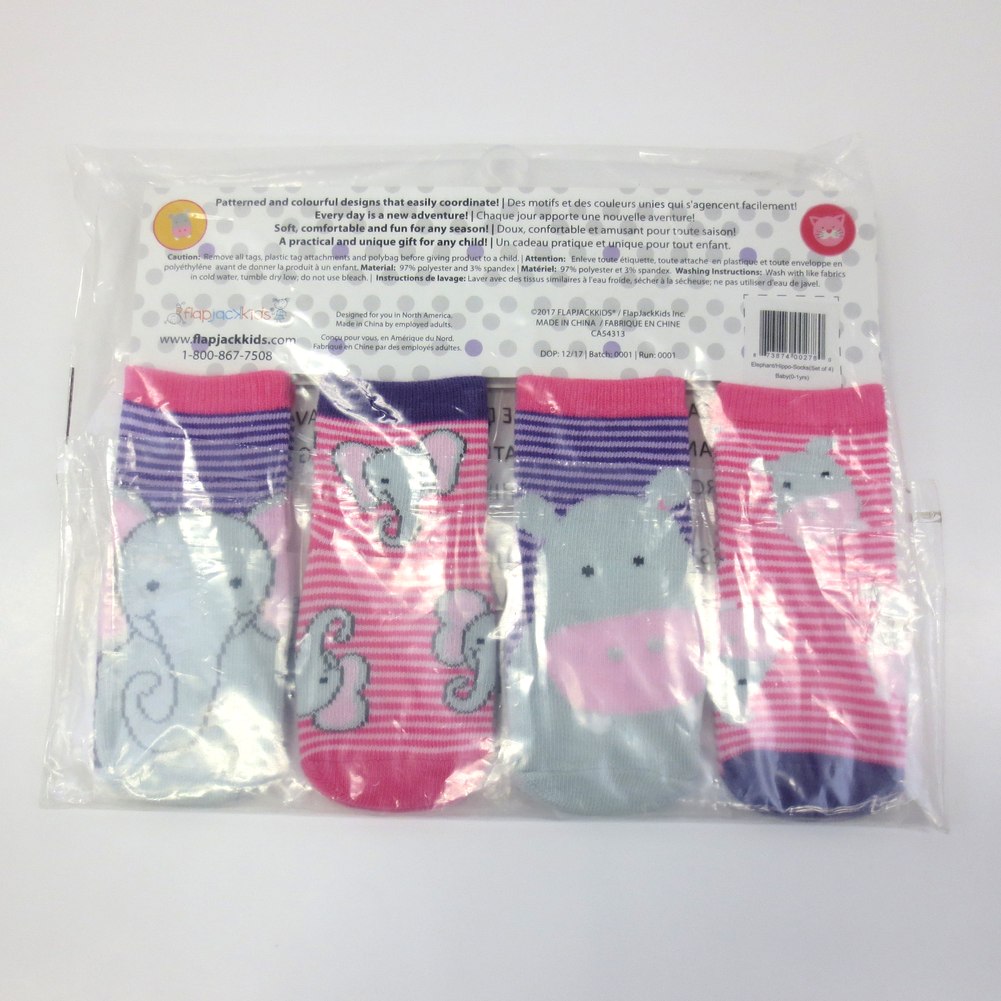 Flap Jack Kids 4-Pack Safari Socks - Elephant/Hippo (Small, 0-12 Months) (79771) (Open Box)