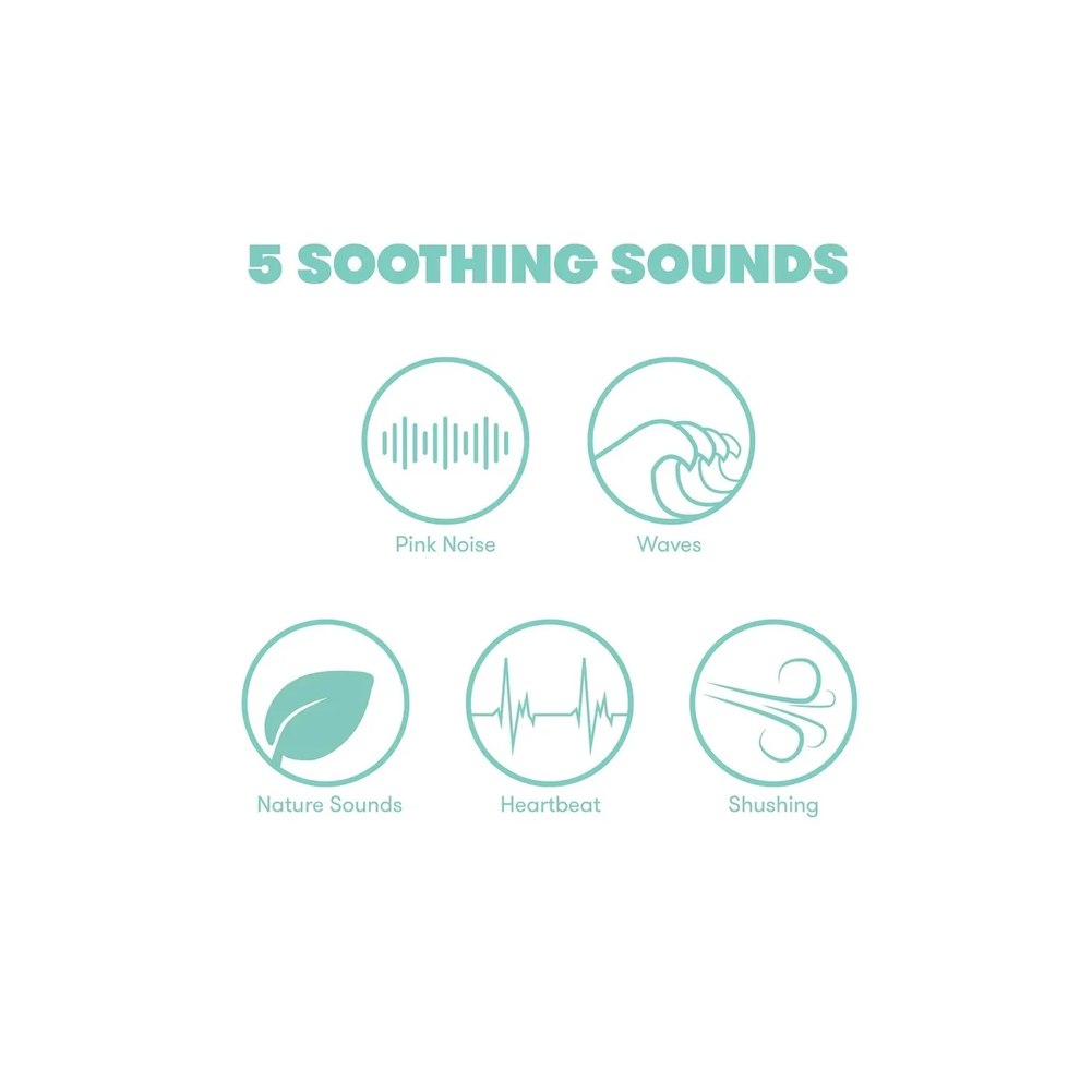 - SOUND ON: 5 soothing sounds including shushing + heartbeat