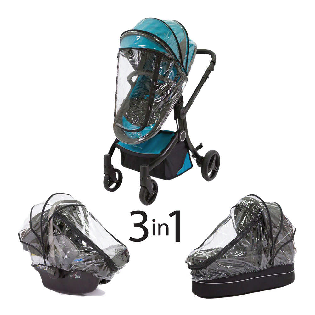 The guzzie + Guss 3 in 1 rain cover allows your child to stay dry and cozy while the weather is stormy. Its unique design will fit onto most brands of bassinet, infant car seat or stroller POD seat. The quick-access zipper door allows you to easily remove baby without having to remove the rain cover.