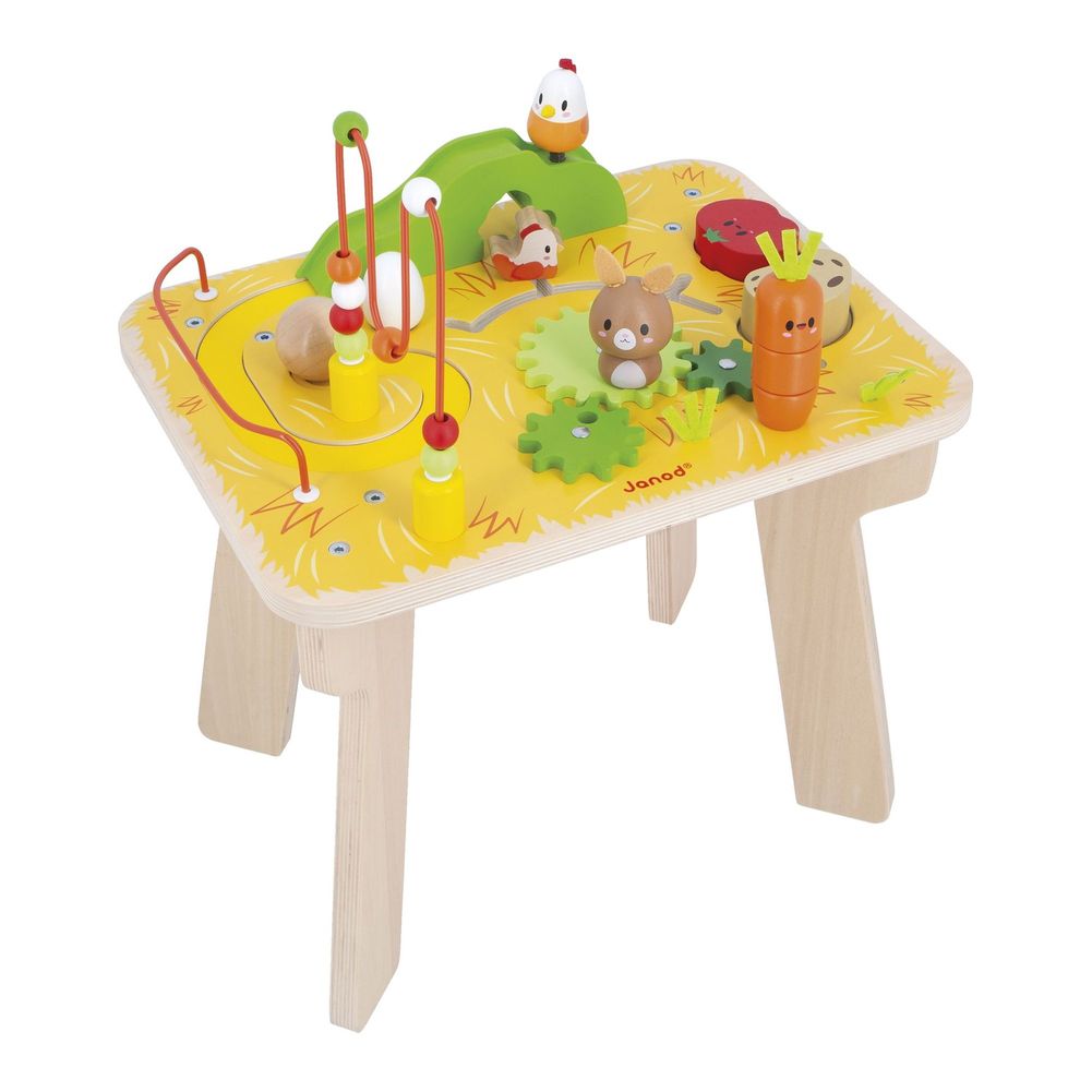 A Janod activity table is a playful support that allows baby to move around the table as he pleases, according to his favorite activity of the day! He can sit or stand in front of the table, and off he goes for more discoveries on the farm! The table is 32 cm high. Made from FSCâ„¢-certified wood from sustainably-managed forests, this farm activity table invites you to take time for discovery!