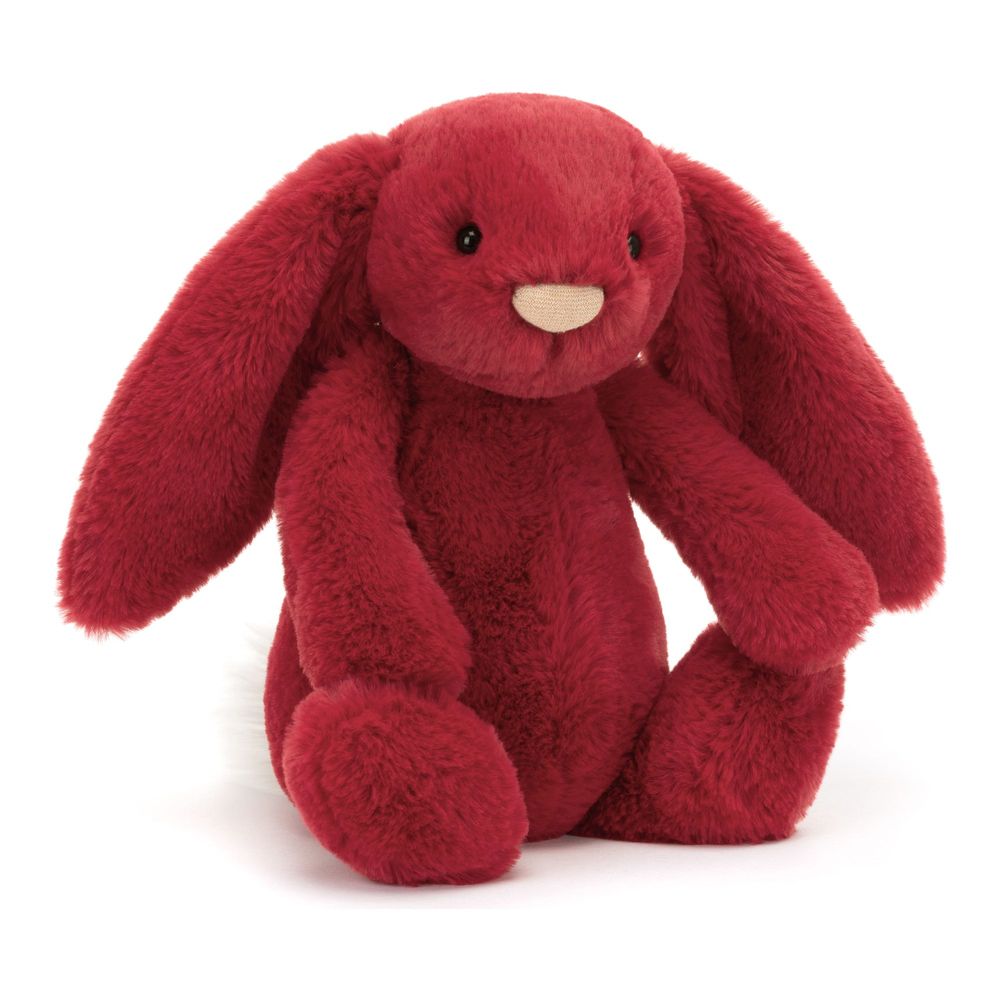 It's impossible not to nuzzle Bashful Luxe Bunny Scarlett. This divinely soft bunny has holly-berry fur and a white tufty bobtail. With bright, glossy eyes, cascading ears and a glittery-pink jersey nose, Scarlett is full of festive magic.