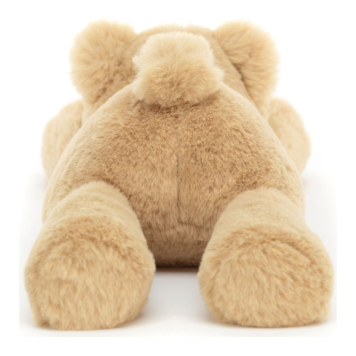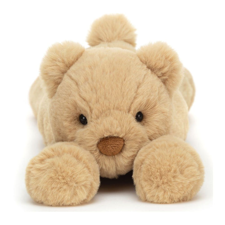Smudge Bear is ready to snooze. It's no surprise that this teddy bear gives a great hug, with silky soft fluff in shades of honey,and podgy trumpet paws. This peaceful cub is ready to snuggle up.