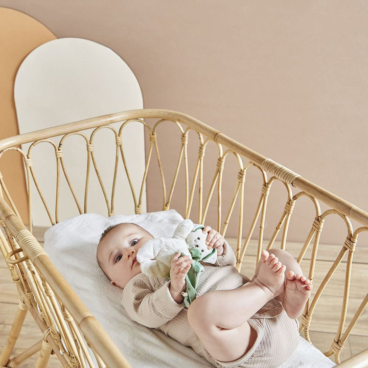 This comforter is presented in a pretty customisable box – made from recycled material – so you can offer the perfect newborn gift! With its bright colours, intense softness, little face and poetic print, this 2-in-1 Kaloo product serves as both a small soft toy and classic comforter, to give baby a lifelong friend! Everything can be machine-washed at 30°, without using fabric conditioner or other additives to preserve all its softness.